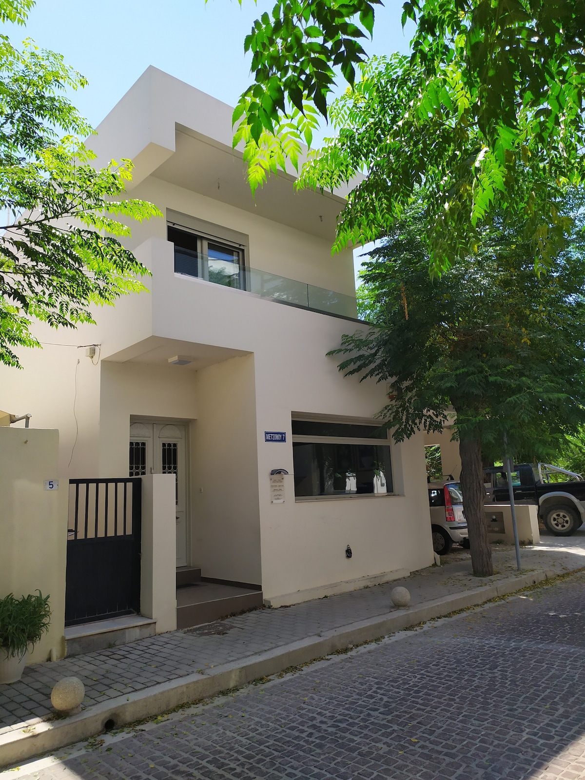 El apartamento está situado en un callejón sin salida, en la planta superior de un edificio de dos niveles. Es un lugar acogedor y espacioso que está cerca de los lugares de interés, situado en una zona RURAL. Magníficas islas griegas y vistas al atardecer Hay aire acondicionado (calefacción/frío) en el salón y en el dormitorio doble. Hay un ventilador portátil en la habitación pequeña. Hay calentadores eléctricos en las habitaciones. Hay un suministro de agua de 2,5 toneladas con bomba en caso de escasez de agua.