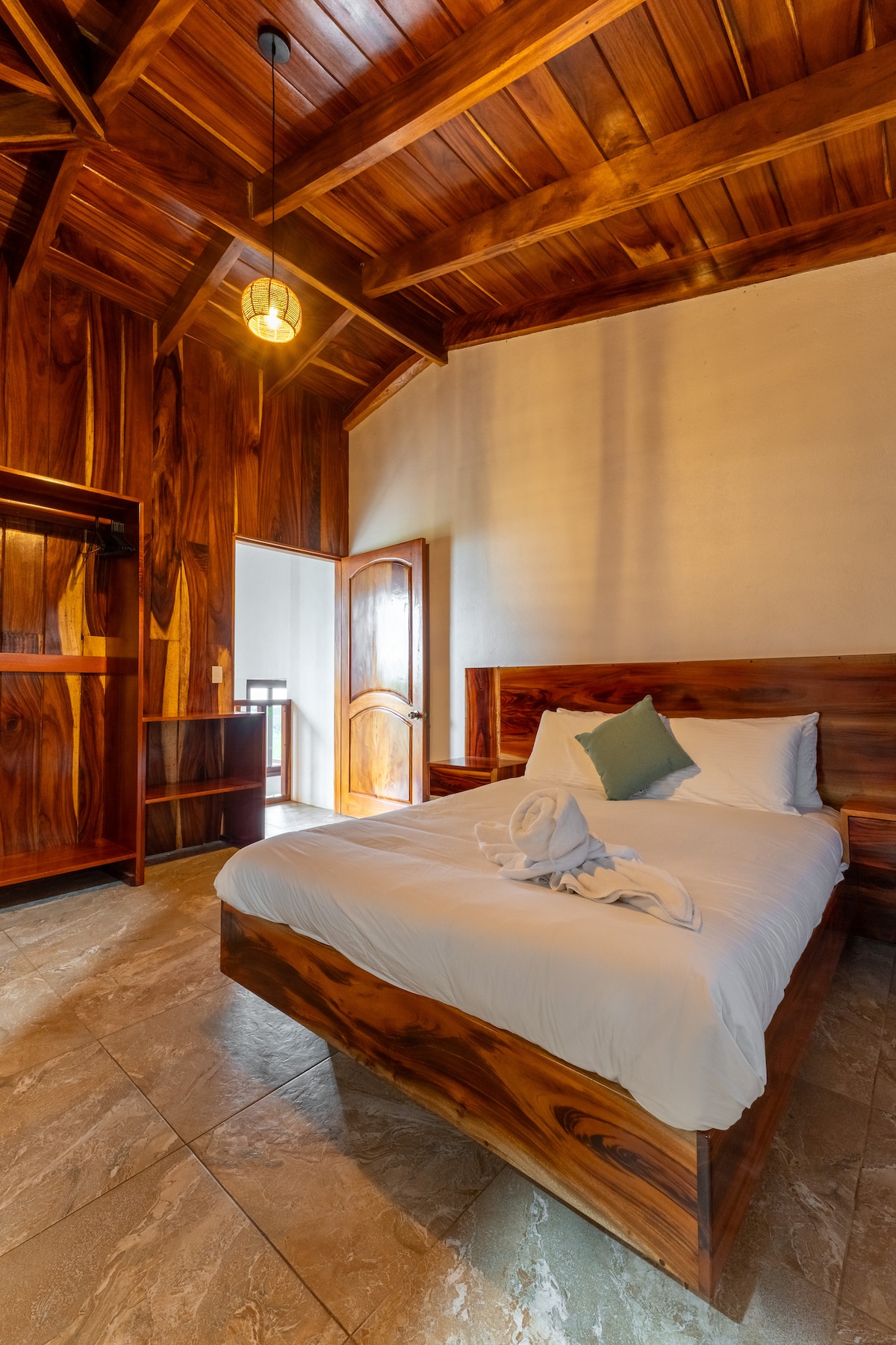 Disfruta de una estancia encantadora y acogedora con impresionantes vistas panorámicas del océano Pacífico, el golfo de Nicoya y el exuberante bosque. Rodeado de aves como las urracas y exuberante naturaleza, podrás admirar el paisaje desde la comodidad de tu cama. Además, tendrás acceso a un sendero privado en nuestra propiedad y disfrutar en completa privacidad y serenidad. Nuestro alojamiento se encuentra a tan solo 15 minutos de los principales atractivos del Bosque Nuboso de Monteverde.