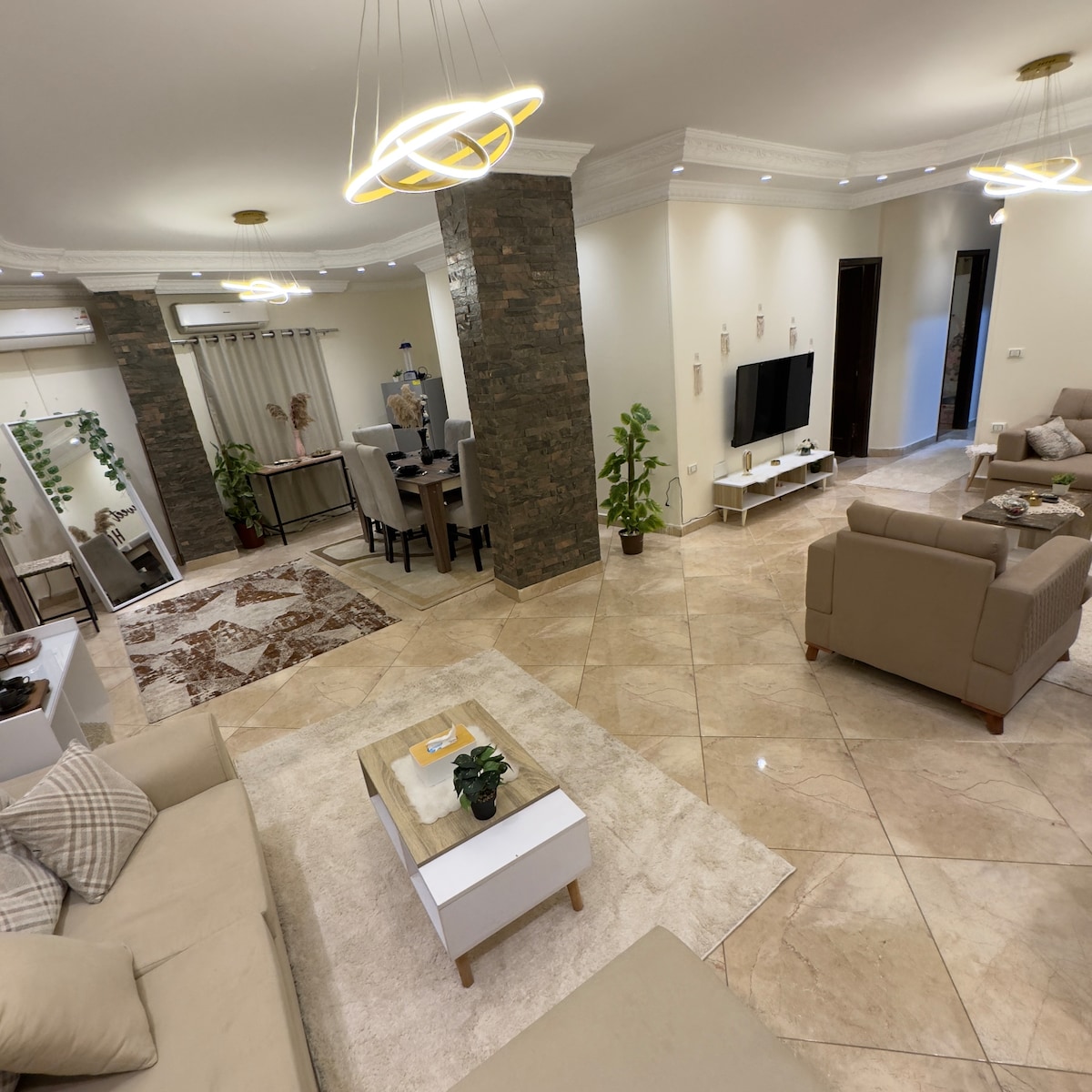 Diviértete con toda la familia y tus amigos en este alojamiento con estilo. Casa privada completa con entrada privada y aparcamiento privado. Disfruta de una estancia fantástica en el espacio verde con tus amigos en el espacio al aire libre. Habitación con TV. La propiedad se encuentra en la zona más atractiva de Egipto: la ciudad de Sheikh Zayed. - A dos minutos de la calle peatonal turística de Sheikh Zayed. - Disfruta del entretenimiento, restaurantes y cafeterías. - A 7 minutos del centro comercial Egypt Mall. - A 5 minutos del centro comercial Al Arab. - A 10 minutos de la plaza AlHossary.
