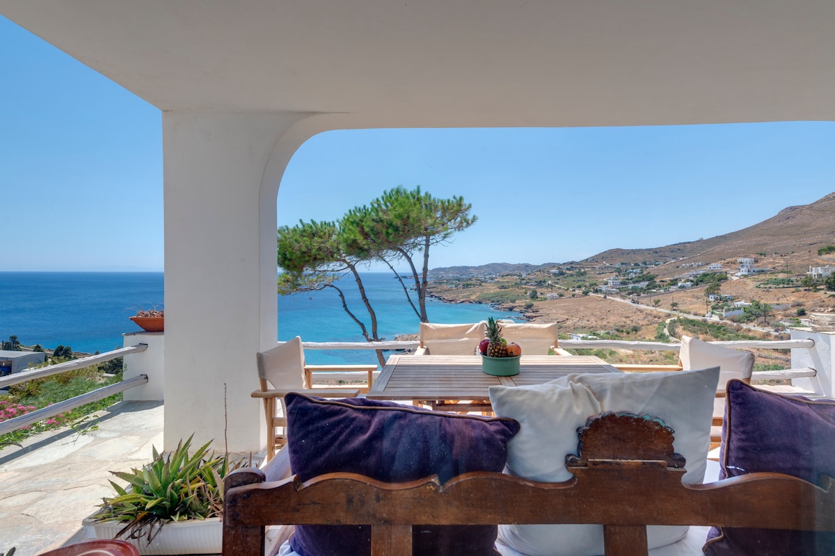Disfruta de la experiencia única que te ofrece la ubicación de esta casa de verano, justo delante de la playa, relájate en el gran porche con vistas al mar y nada en el claro mar Egeo. La casa está situada en el sur de la isla, desde donde puedes comenzar tus excursiones, ya sea en coche o en transporte público. Hay una parada de autobús cerca de la casa y conexión entre Hermoupolis (la ciudad capital), el puerto y otros pueblos y playas. ¡Siéntete como en casa y disfruta de tu estancia en mi alojamiento!