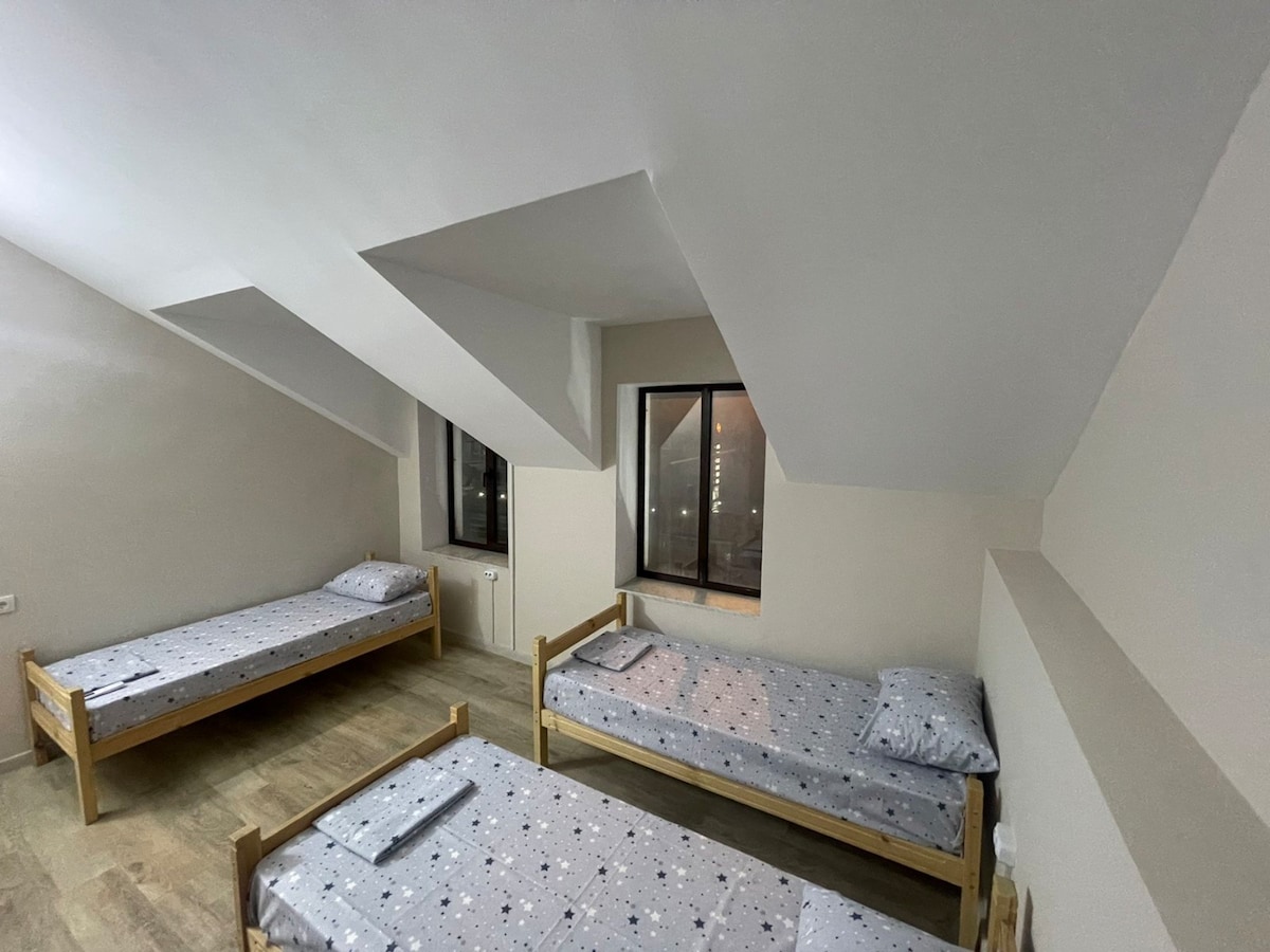 Una cama en un albergue en Chisinau. La habitación tiene 5 camas individuales. Dos baños, cocina, nevera, microondas, cocina eléctrica. Todas las habitaciones tienen aire acondicionado.