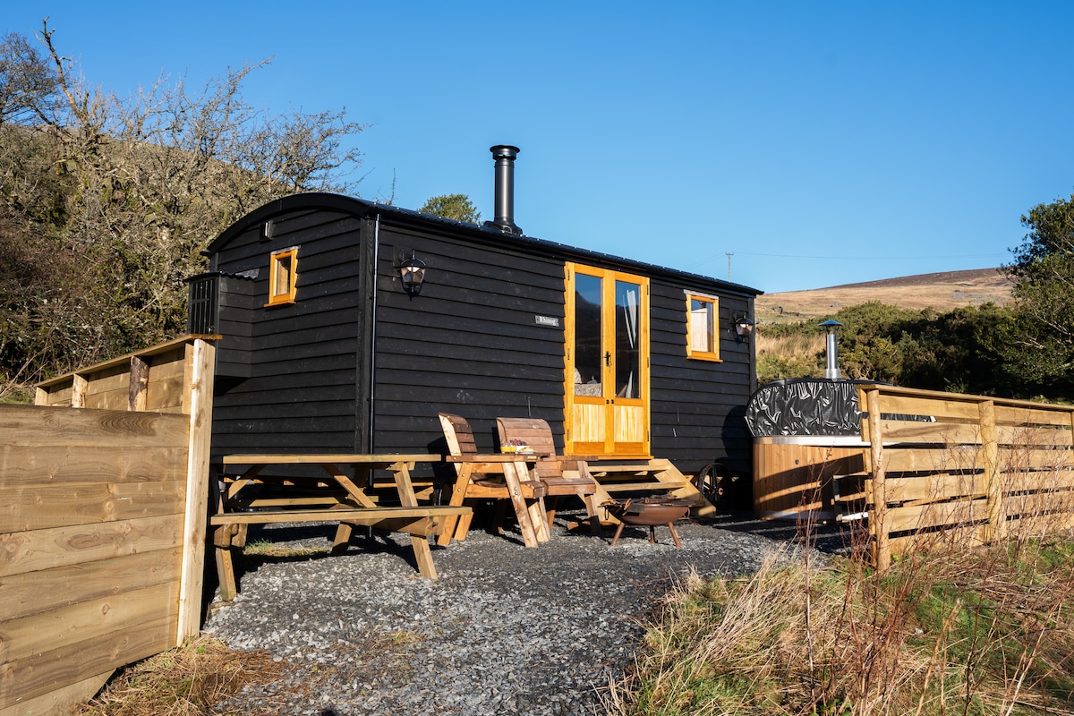 Una escapada única a Snowdonia. Nuestro NUEVO carromato Rhinog está situado al pie de las montañas Rhinog. Disfruta de la acogedora calefacción por suelo radiante, enciende un fuego en el quemador de leña y disfruta de las tranquilas vistas a las montañas, las puestas de sol sobre la bahía de Ceredigion o la contemplación de las estrellas. Relájate en el jacuzzi para disfrutar de la experiencia completa de bañarte bajo las estrellas o siéntate junto a la hoguera/barbacoa con una bebida fría en la mano. Un lugar para escapar, desconectar, leer un libro, escribir un libro, caminar y descubrir. Un lugar perfecto para crear recuerdos.