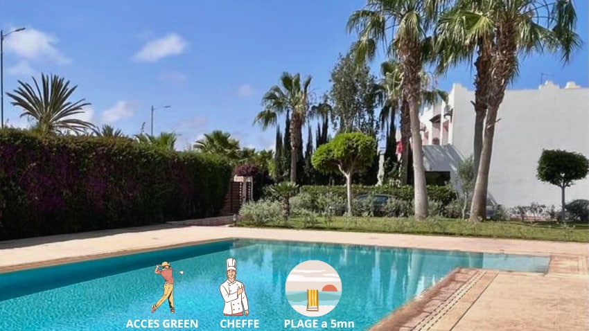 Magnífica villa con piscina climatizada en una nueva residencia de lujo y seguridad las 24 horas. Perfecto para 4 adultos más 2 niños de pago como máximo, golfistas, turistas, familias y gestionado con servicios hoteleros incluidos un desayuno continental, limpieza cada 3 días, conserjería 7/7; cocina privada posible según disponibilidad. Está cerca de 3minutos de 3Golfs y a 5 minutos del mar y del centro de la ciudad de Agadir
