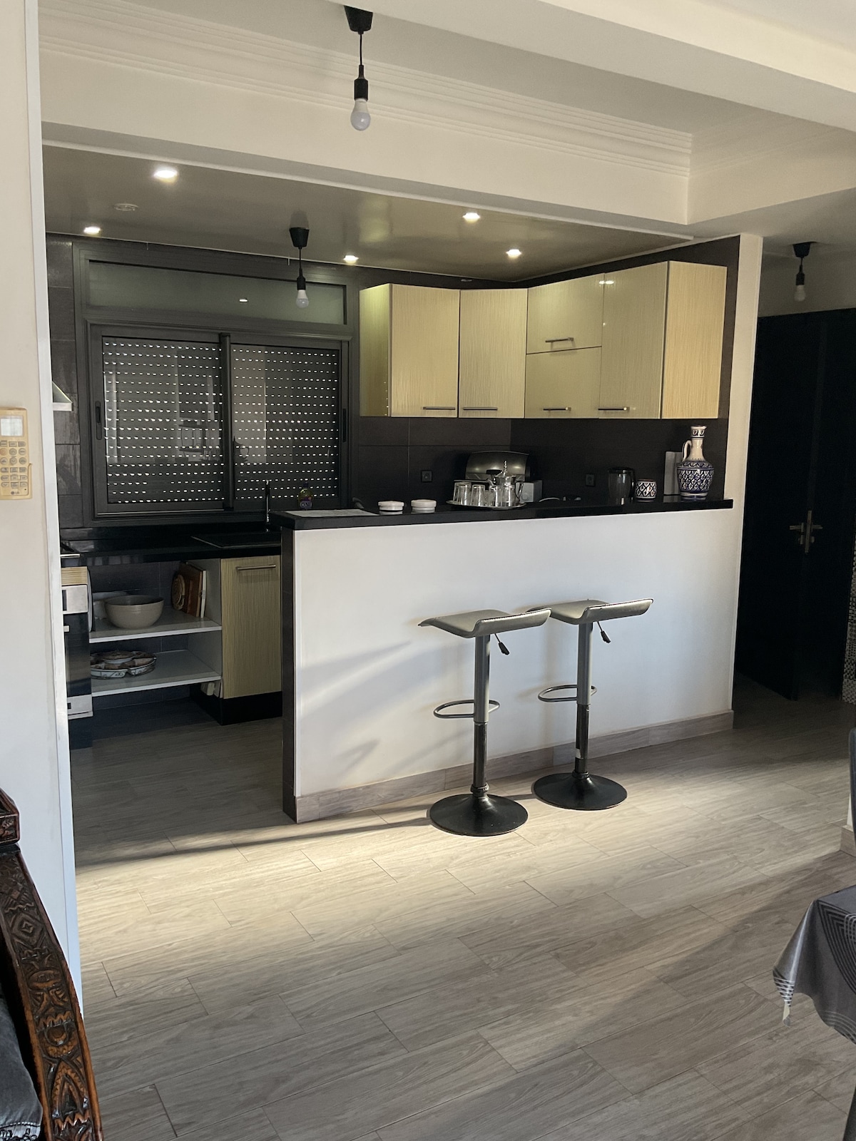 Apartamento en la mejor zona de Agadir, a pocos pasos de la playa y del centro comercial. Hay algunos cafés/restaurantes increíbles y limpios a pocos pasos del apartamento. Estás seguro las 24 horas del día y tienes acceso a 2 piscinas. Un lugar increíble para vivir con un increíble sentido de comunidad. Adecuado solo para profesionales, parejas y familias. No se aceptarán grupos de hombres.
