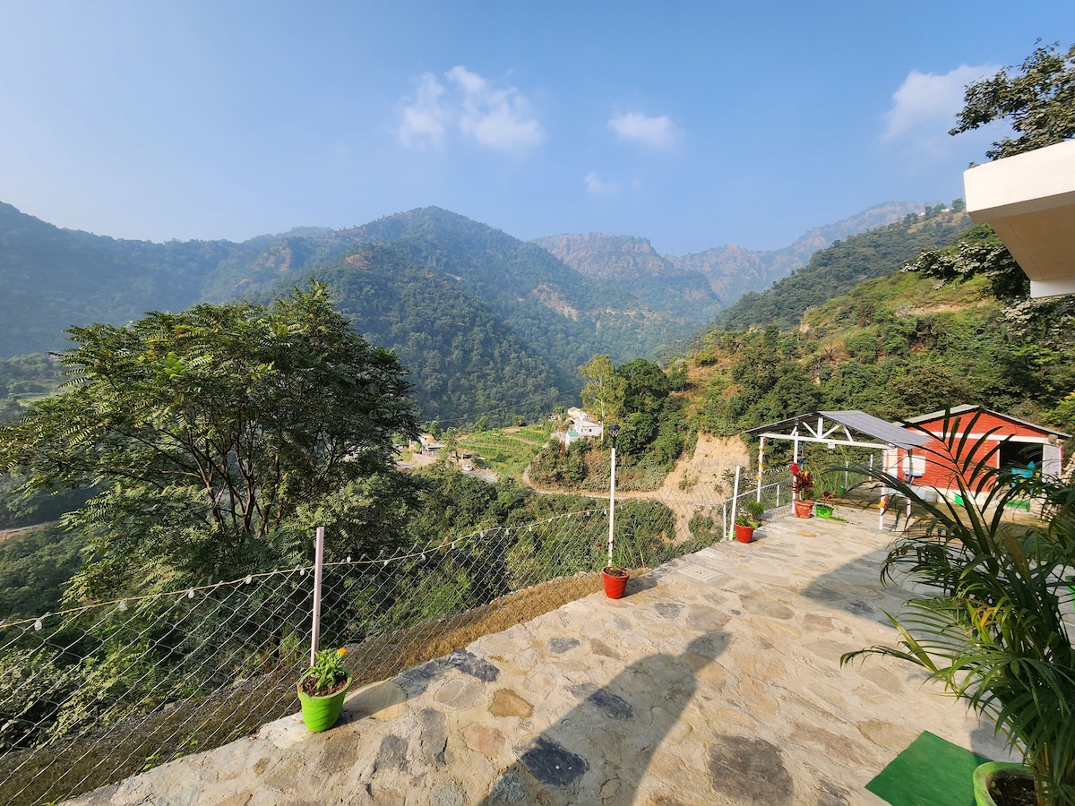 La casa de campo está dentro de un huerto de kiwis y manzanas con cientos de árboles repartidos en 4 acres de terreno en terrazas. Hay un exuberante valle verde deshabitado por debajo, con enormes picos nevados del Himalaya en el horizonte. Tenemos wifi de Airtel. Hay estacionamiento privado disponible para 2 autos. Desde la plaza de aparcamiento hasta la casa rural, hay un paseo gradual de unos 90 metros. Este paseo es dentro de nuestro huerto y no en la carretera. Disponemos de un conserje y personal en la propiedad para cocinar para ti.