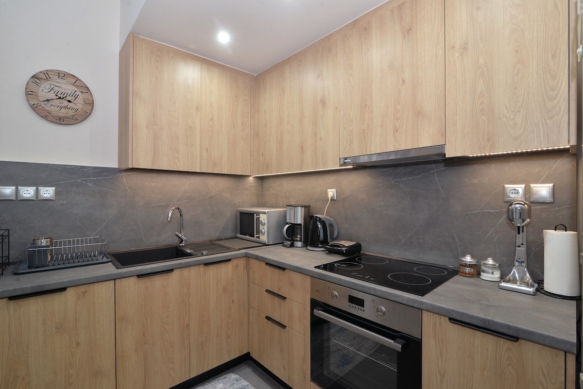 Moderno y soleado apartamento de 47 metros cuadrados en el centro de Leptokarya, a 10 minutos del mar y a 5 minutos de la estación. Ideal para familias o profesionales, con entrada independiente, terraza, televisores inteligentes, cocina totalmente equipada y baño con lavadora. Punto de partida ideal para el Olimpo, sitios arqueológicos y pueblos tradicionales.
