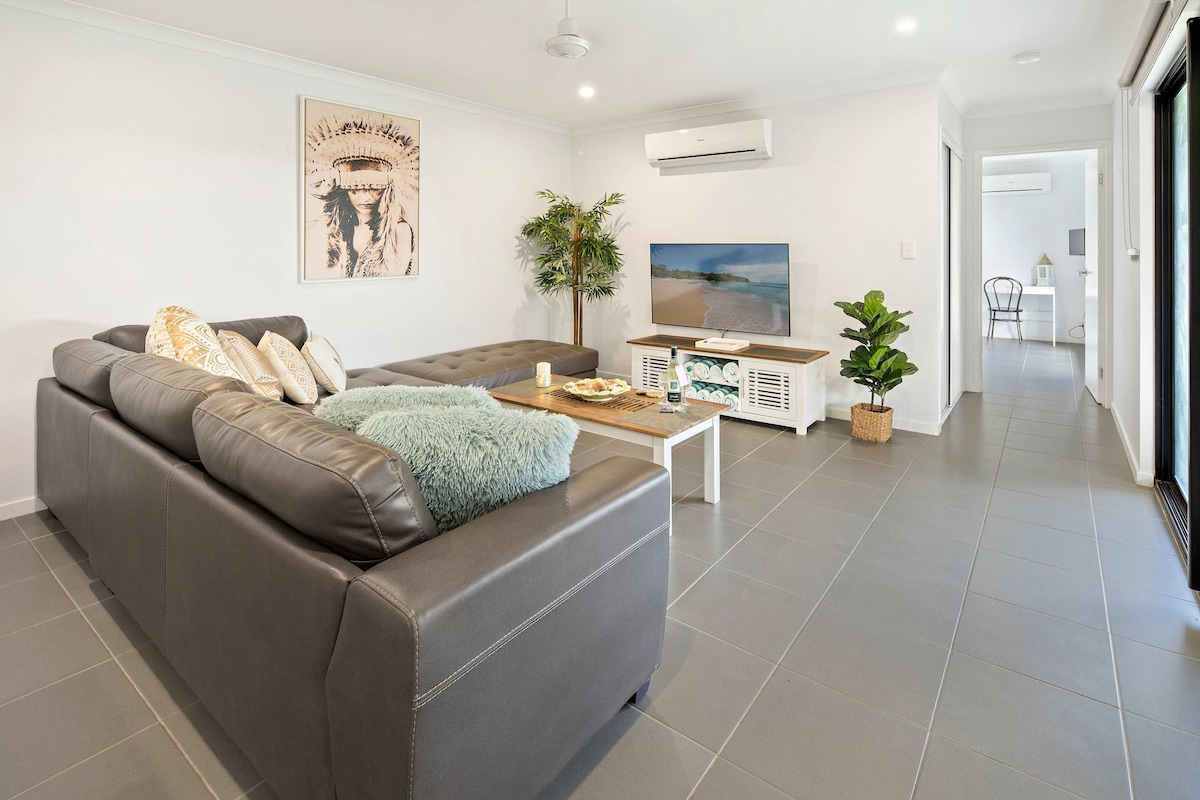 Relájate en este alojamiento único y tranquilo, recientemente renovado y bien equipado con todas las comodidades de un hogar. Whitsunday Pandanus ofrece la mezcla perfecta de estilo moderno, comodidad y una tranquila ubicación residencial para basarte mientras exploras la zona. Cuenta con 2 dormitorios con cama tamaño queen y 2 sofás cama que se pueden convertir en opciones adicionales para dormir hasta un máximo de 6 huéspedes. Disfruta y relájate con una ducha privada al aire libre y una zona de entretenimiento cubierta en el patio.