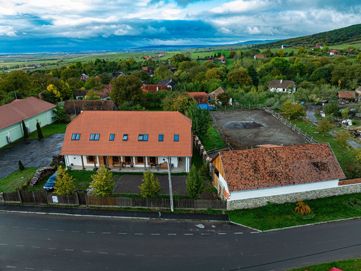 La casa de campo con tejado de madera de más de cien años se encuentra a 11 km de Sfântu Gheorghe, a 28 km de Baile Tușnad, a 7 km de la finca del rey Carlos en Zalánpatak y a 40 km de Brașov. La casa, situada en un entorno tranquilo, ha sido completamente renovada, conservando el encanto de los viejos tiempos y ofreciendo las comodidades del siglo XXI. El amplio patio, el huerto, el acogedor porche, el horno exterior, los muebles seleccionados con buen gusto, el entorno pintoresco, sirven para el descanso lleno de experiencias de los viajeros.