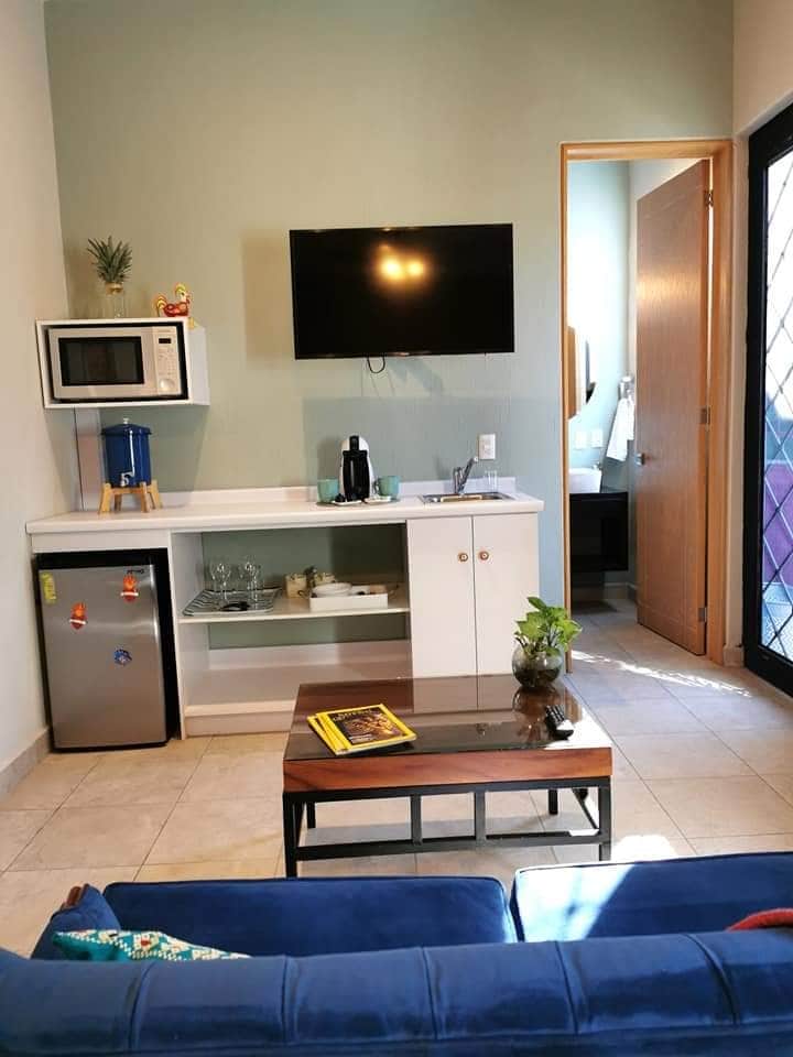 Canadian-owned. and managed. Centrally located in a popular Mexican village. Close to Mexican art / culture / restaurants. You’ll love it because of the comfortable ambiance in this 72 sq metre (780 sq ft) renovated casita next to a hacienda style home in a Mexican neighbourhood, located 6 minutes walk from Ajijic Plaza, 5 minutes walk from hiking trails, 10 minutes from Lake Chapala Society, 12 minutes from lakefront malecon (promenade).