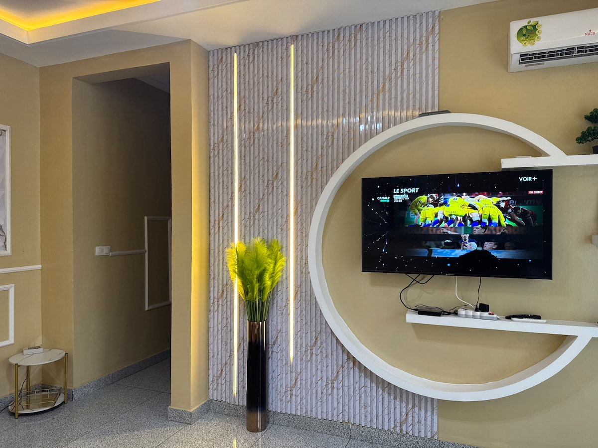 Détendez-vous dans ce doux logement où nous accordons une attention particulière à la propreté +++ et à la sécurité. Situé au sein de la Résidence Gigi home, il dispose d’eau chaude, climatisateur dans chaque pièce, Château d’eau, wifi, vidéosurveillance, gardiennage. Nous sommes présents sur les réseaux ( Résidence Gigi home) pour plus de photos et infos.