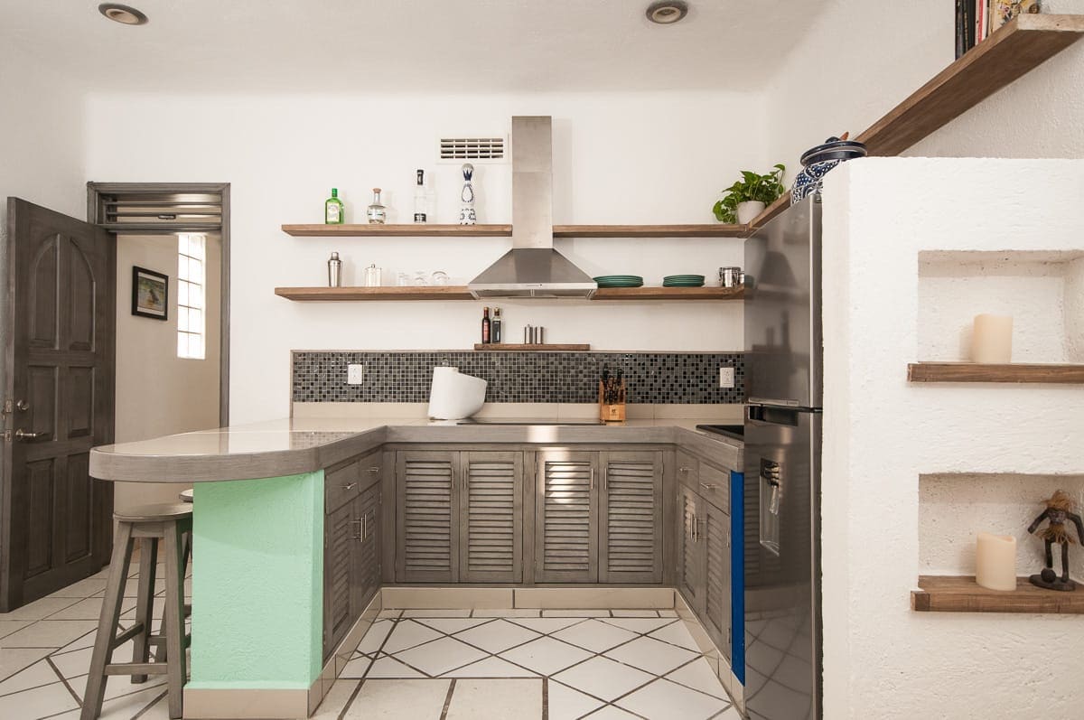 Este estudio en el tercer piso (superior) es perfecto para una pareja o una sola persona. Las amplias ventanas hacen posible que te despiertes por la mañana casi rodeado de vistas al Caribe desde tu cama tamaño king en tu dormitorio con aire acondicionado. Este estudio cuenta con una zona de cocina y barra de desayuno, una sala de estar con TV, comedor, wifi de alta velocidad, ducha y una terraza muy soleada en el tercer piso con grandes puertas correderas de vidrio para disfrutar de las vistas y de las brisas agradables.