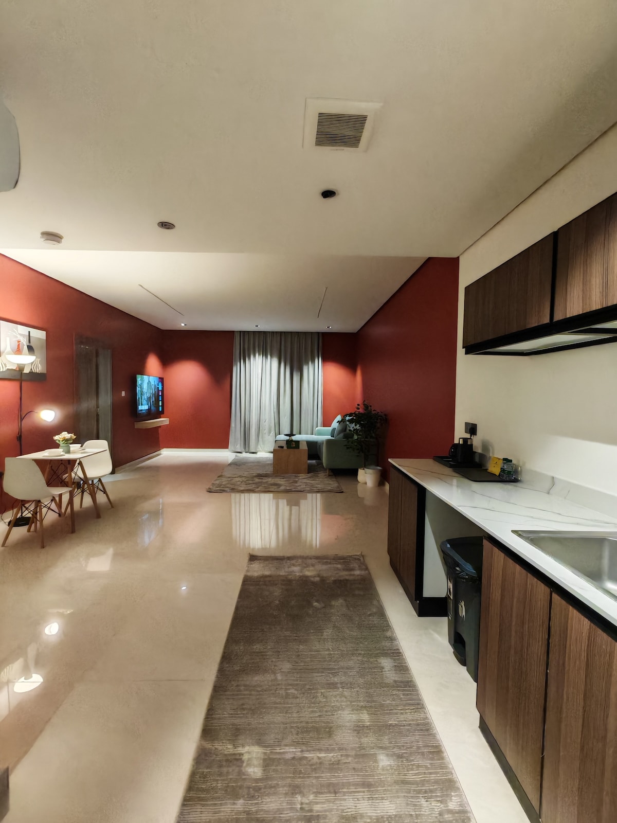Disfruta de una experiencia única en una habitación privada que ofrece relajación y comodidad. El apartamento incluye una cama y una sala de estar donde podrás disfrutar viendo una pantalla inteligente de 55 pulgadas. También hay una cocina y café para satisfacer todas tus necesidades. Habitación de hotel con entrada inteligente y diseño cómodo A 5 minutos a pie del centro comercial Al-Ahsa. A 5 minutos a pie del parque Rey Abdullah A 10 minutos en coche de la Universidad Rey Faisal A 10 minutos en coche de la Facultad de Artes. A 10 minutos en coche del Aeropuerto Internacional de Al-Ahsa A 15 minutos en coche de la estación de tren. Las cafeterías están cerca de los restaurantes. Estudio con un diseño cómodo Acabado de lujo