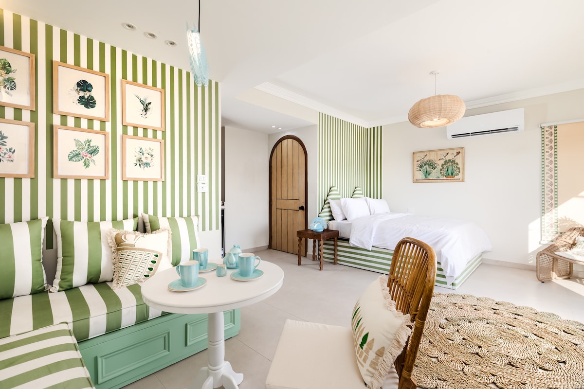 ¡Te damos la bienvenida a tu escapada de lujo en Guiza! Este moderno estudio está perfectamente diseñado para ofrecer tanto estilo como funcionalidad, fusionando el diseño contemporáneo con elementos inspirados en el rico patrimonio faraónico. Ubicado cerca de las Grandes Pirámides y del Gran Museo, este espacio es un refugio ideal para aquellos que aprecian la comodidad envuelta en la cultura.