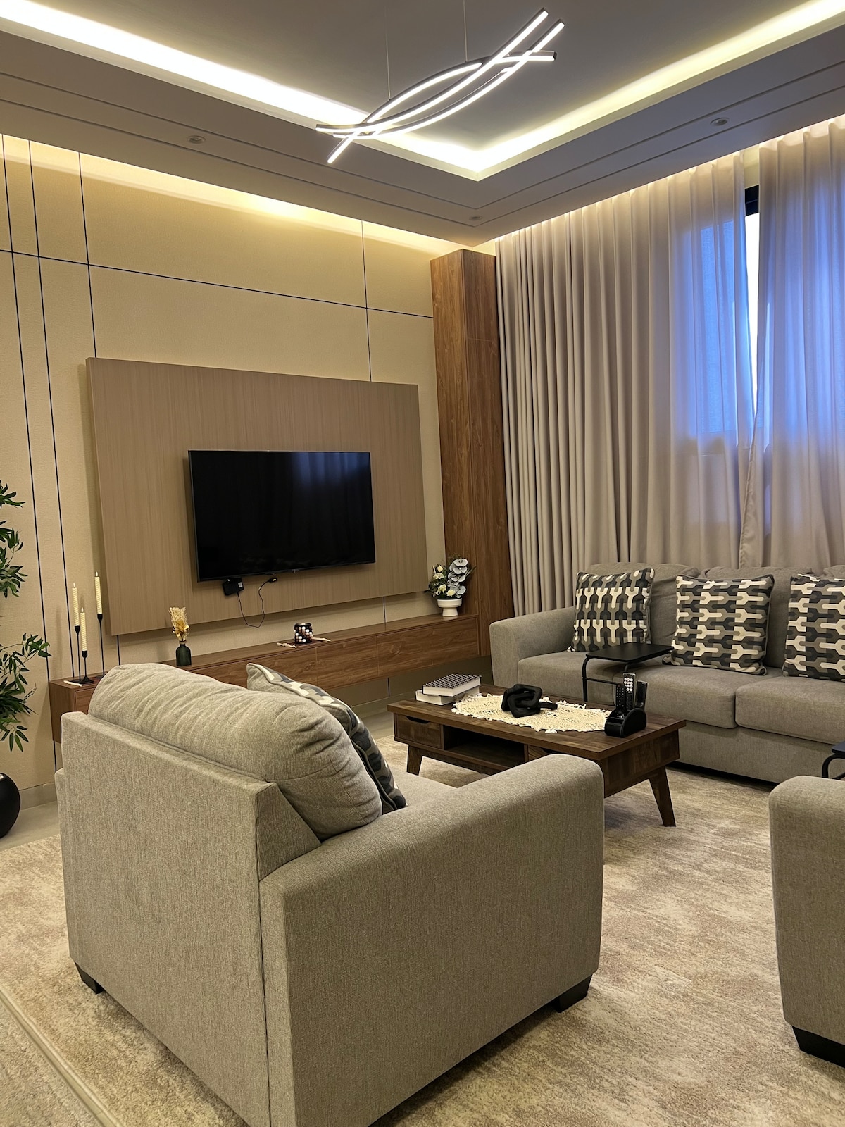Relájate en este espacio único y tranquilo. Es una habitación principal y una habitación con 2 camas Además, un salón con un televisor inteligente que admite Netflix, Watch, YouTube y una mesa con sillas y una cocina (estufa eléctrica, hervidor de agua, nevera y preparaciones adecuadas), un moderno ciclo de agua con una fuerte propulsión de agua en una nueva forma de trabajo, modernos aires acondicionados divididos, limpieza completa y servicio las 24 horas. * * * Nuestra variedad para fumadores * * * * * * * prohibido fumar * * * Le rogamos a cualquier fumador que no reserve este alojamiento.