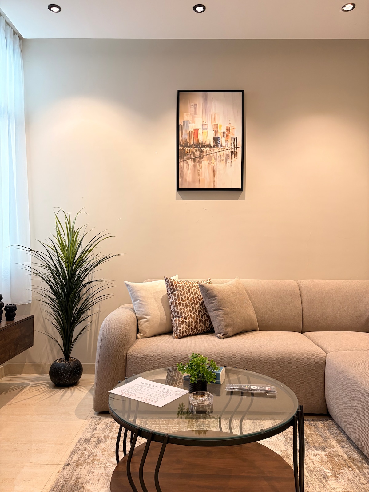 Welcome to your elegant getaway! This luxury 1-bedroom apartment offers a perfect blend of modern comfort and sophisticated design. Thoughtfully furnished with stylish interiors, high-end finishes, and warm ambient lighting, this space is designed for both relaxation and productivity.