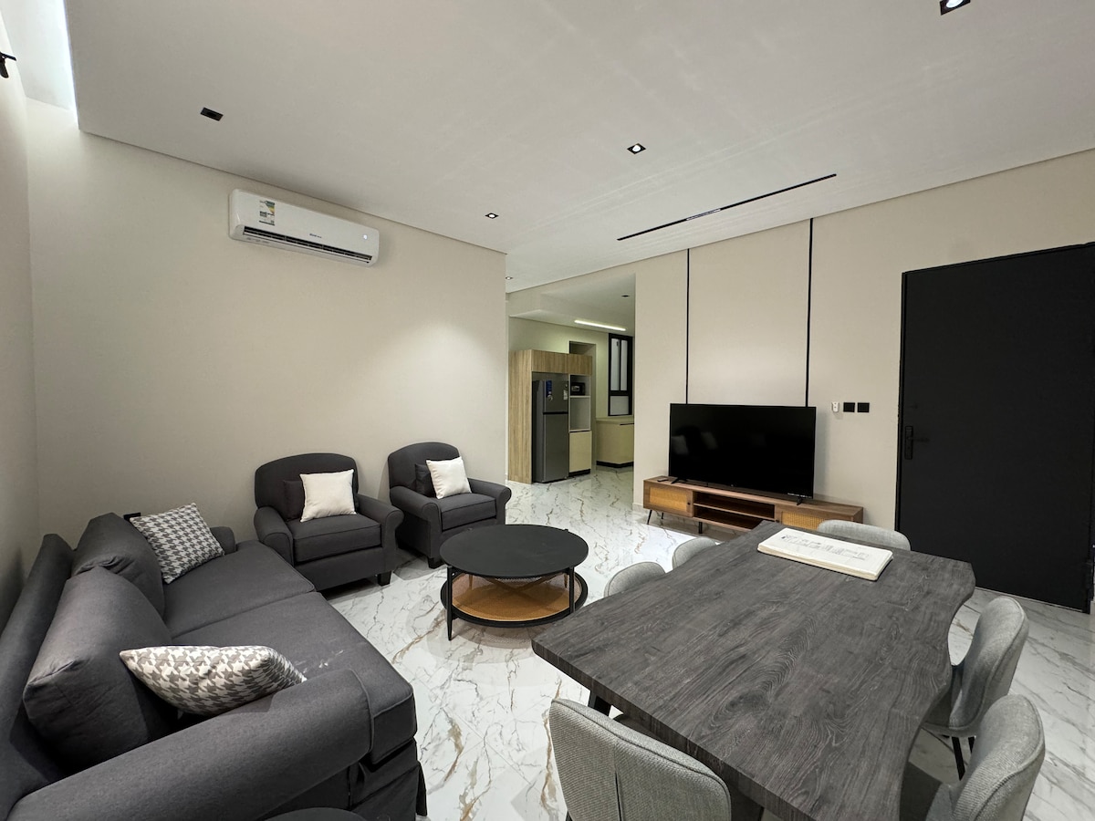 Disfruta de una estancia de lujo en este moderno apartamento de un dormitorio, situado en el barrio de King Fahd, en un edificio nuevo y excelente desde el exterior, caracterizado por el lujo y la tranquilidad. Los muebles son modernos y cuidadosamente seleccionados para ofrecerte un ambiente cómodo y sofisticado, con una pantalla de 70 pulgadas para una experiencia de visualización ideal. El apartamento está equipado con un sistema de entrada inteligente para mayor facilidad y seguridad, así como una cocina totalmente equipada con todo lo necesario para preparar tus comidas. También hay aparcamiento dedicado para garantizar tu comodidad. Este alojamiento es perfecto tanto para estancias cortas como largas, ya que combina comodidad, elegancia y una ubicación distintiva.