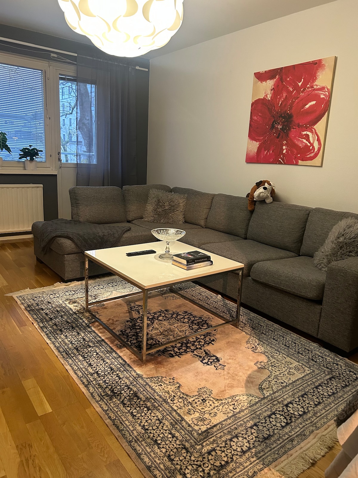 Koppla av för dig själv eller med familjen i detta fridfulla boende endast 2,3 km från centrum. 30 min gångväg. Närmaste matbutik 800m. Bakgård finns om man önskar grilla. Stor balkong i söderläge Bastu finns i huset som man kan boka om så önskas. En dubbelsäng som kan dras isär. Bäddsoffa för 2 med extra bädd madrass. Babysäng finns utan extra kostnad. Sängkläder och handdukar inkluderat. Fullt utrustat kök.