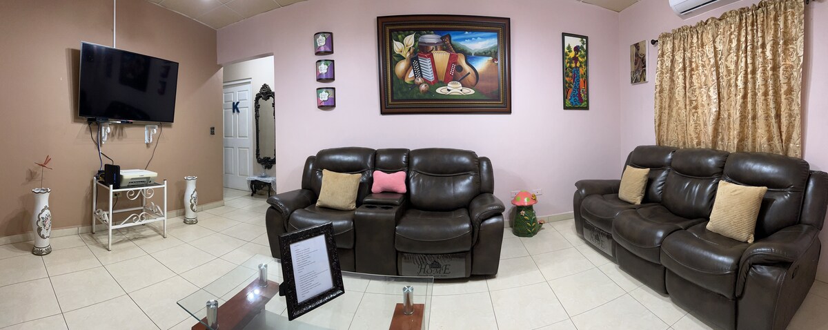 Disfruta de una cómoda estadía en La Riviera de David, Chiriquí. Esta casa es perfecta para familias o grupos de hasta 6 personas que desean estar cerca de todo: supermercados, restaurantes, farmacias y transporte. Cuenta con: 🛏️ 2 habitaciones con camas cómodas y aire acondicionado. 🍳 Cocina equipada 🛋️ Sala-comedor y área de desayunador. 📶 Wi-Fi de alta velocidad para trabajo o entretenimiento 🚗 Estacionamiento techado 🚽 2 baños Espaciosos. 🧼 Lavadora y secadora