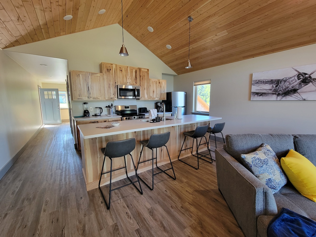 Recién construido en 2024. Las suites de 1 dormitorio más lujosas de Homer. (Capacidad para 4 personas) Elegante alojamiento junto al lago con vistas a una auténtica base de hidroaviones. Con muebles de nogal, cocina totalmente equipada, lujosa ducha completa, lavadora/secadora en la unidad, internet de alta velocidad, TV de 65 pulgadas, calefacción por suelo radiante, balcón grande, junto al lago, perfecto para relajarse por la mañana o por la noche. Cerca de una cervecería local, restaurantes, playas, Homer Spit, cerca del centro de la ciudad. Absolutamente el mejor alojamiento que Homer tiene para ofrecer.