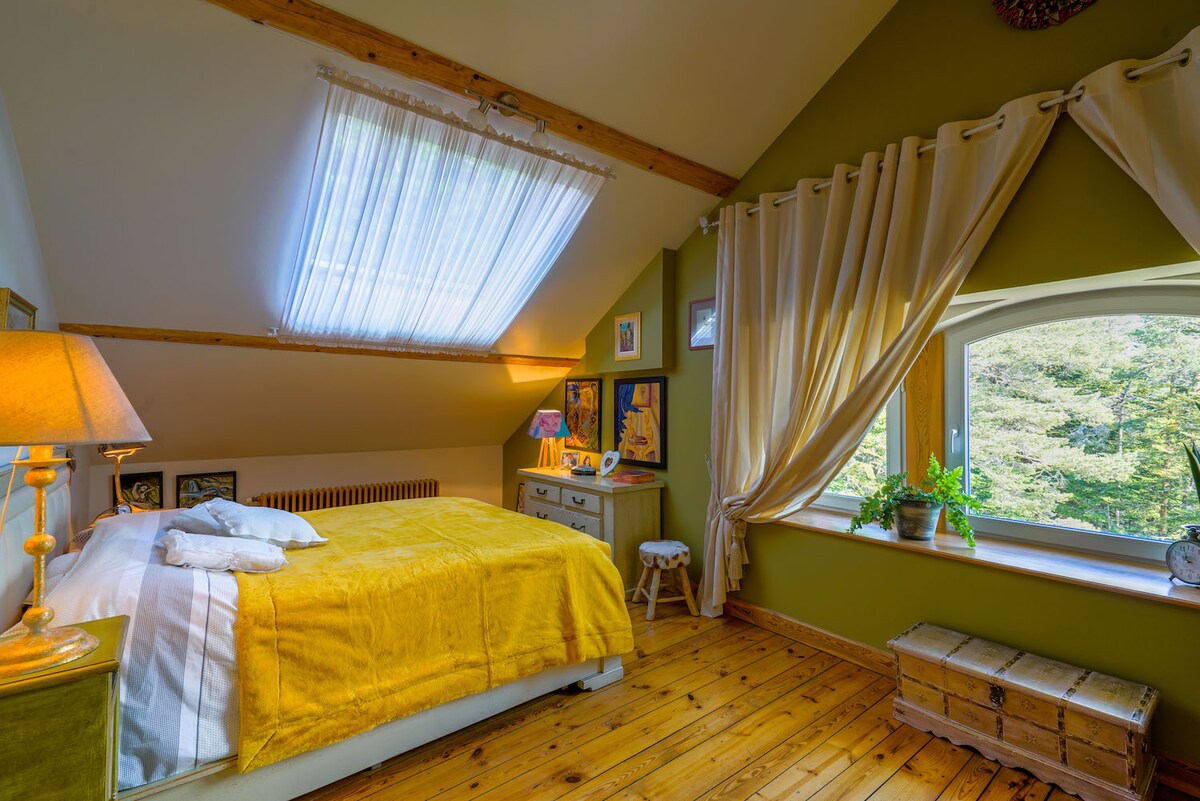 Una casa acogedora en un jardín natural con vistas a la montaña