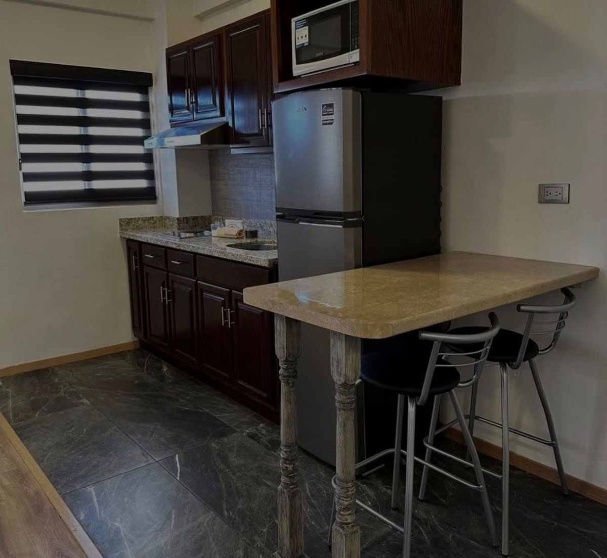 Cómodo y confortable, cuenta con una recámara amplia con cama matrimonial, baño con agua caliente, mini split frío/calor, frigo bar, cafetera eléctrica y horno microondas para que tu estancia por turismo, placer ó trabajo sea como si estuviera en casa. El internet inalámbrico y Smart TV también están disponibles para que tu estancia sea completa, si tienes tu cuenta de Netflix puedes configurarla para que disfrutes de tu aplicación, si necesitas asistencia puedes contactarme con toda confianza.