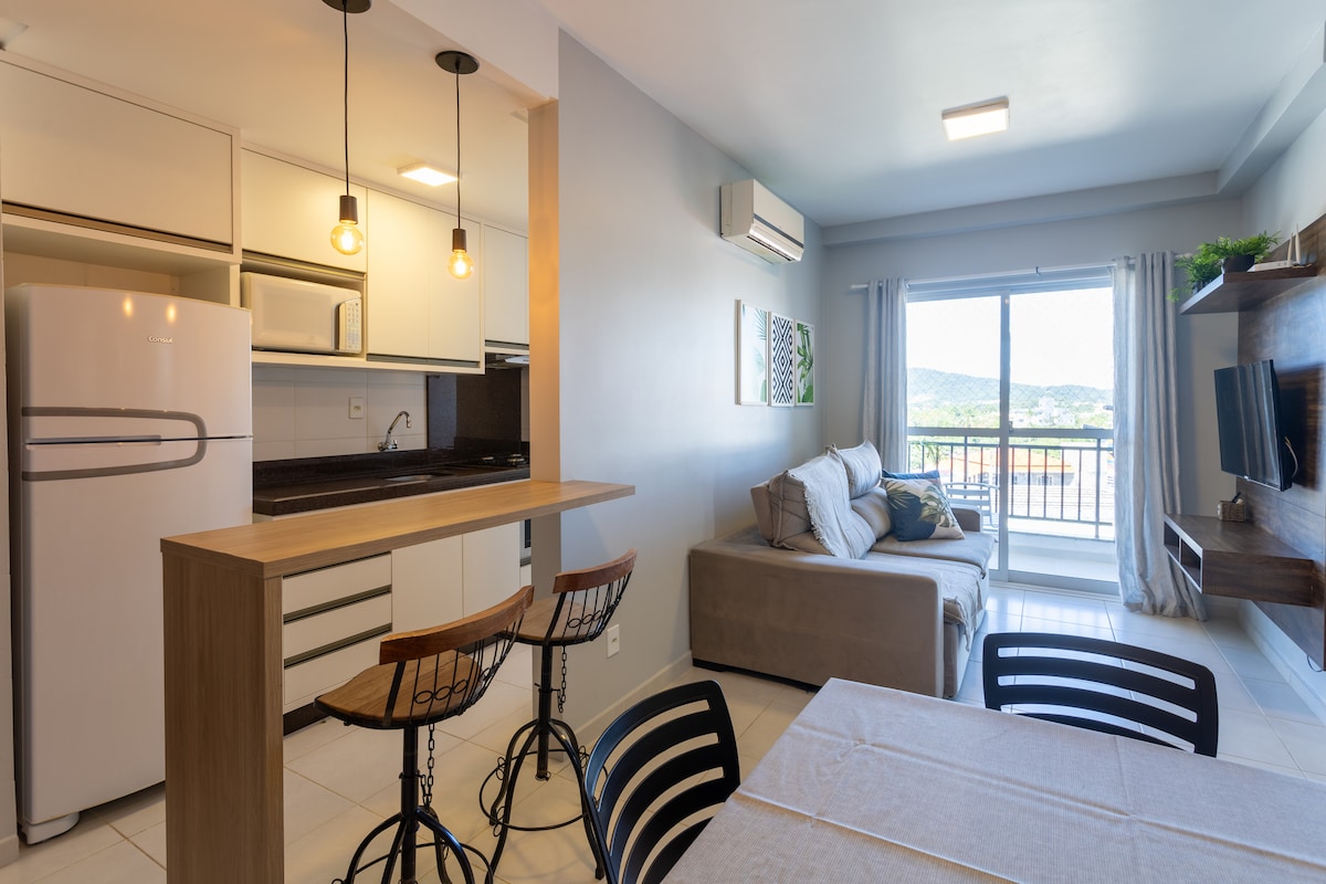 Lounge Apartment, located 5 minutes from Brava Beach and 10 minutes from Balneário Camboriú. The location is perfect. Only 5 blocks from Beach. Close all parties and restaurants. Condo with complete infra, Pool, Gym, Steam and 5 Barbecues. The apartment has Mountain-facing Jacuzzi with hydro and chromotherapy. Ideal for relaxing or take a romantic time. It has 58 'smart TV in the living room and 40' in the bedroom. Full kitchen. Machine washes and dries. You will love this place.