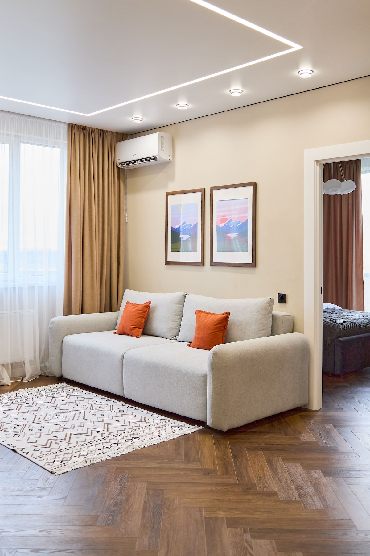 Welcome to your ideal stay in Almaty! Enjoy breathtaking mountain and city views right from your window. -7 minutes to Metro Station -сomfortable bed and cozy sofa -fully equipped kitchen -modern bathroom with fresh towels and toiletries - Wi-Fi and SmartTV The apartment is located in a safe and lively district, close to cafés, supermarkets, pharmacies, shopping malls! Self-check-in available Always ready to assist you — feel free to message any time. Relax, explore, feel at home!