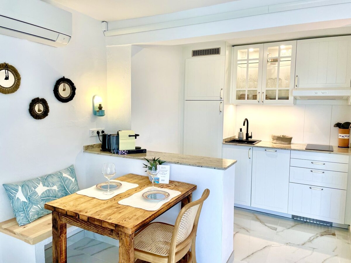 Relax in the middle of lush Meditarranean nature. Spacious ground floor apartment of the villa, situated on Javea’s Montgo in the pine trees and just 7 min away from Javea Old Town and Port. Spacious open-plan kitchen-dining-living space with convertible sofa for comfortable sleeping of 2, luxurious bathroom and separate bedroom with 2 beds. Big sun terrace with sun loungers and sitting area by the pool (6X12m). You have exclusive use of garden, outdoor dining area and pool during your stay.