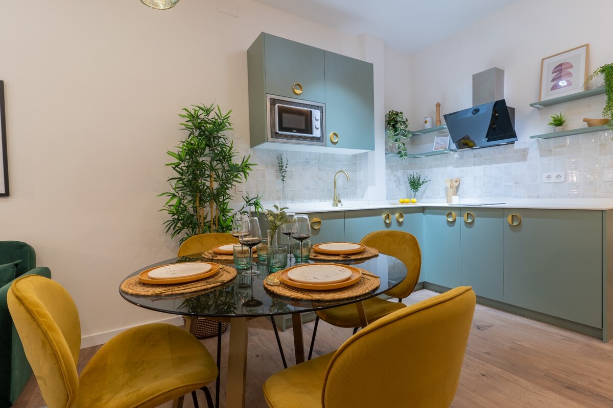Modern apartment with 2 bedrooms and 2 bathrooms (one en suite). Ideal for couples or families who value privacy. It features a fully equipped kitchen, a cozy living-dining room with piano, guitar, HBO, board games and a terrace ideal for relaxing. Located in a quiet neighborhood, it's ideal for unwinding after a day of sightseeing. Comfortable and functional, with excellent public transport links, perfect for both short and long stays thanks to the high-speed Wi-Fi and the remote work area.