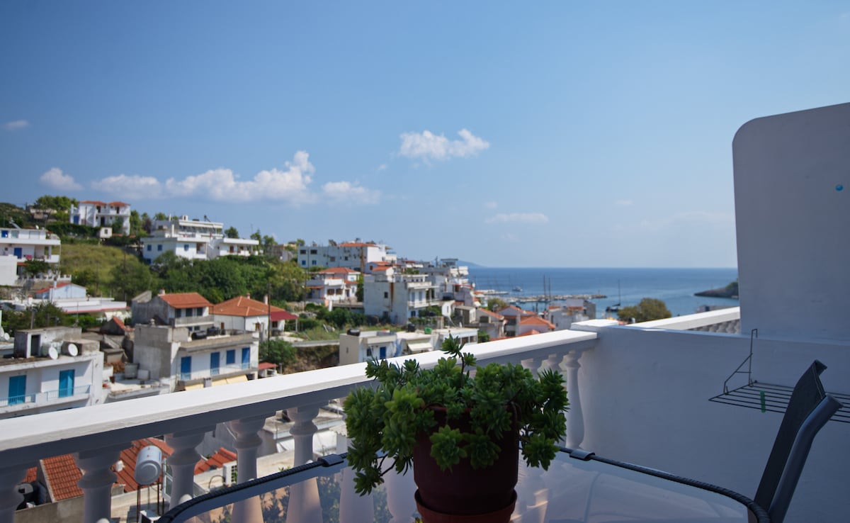 Esta pequeña casa independiente, ideal para una pareja, se encuentra en el antiguo pueblo tradicional de Alonissos. La casa consta de un dormitorio, una cocina y un baño. También cuenta con un lindo balcón con excelente vista al mar y al pueblo. La zona es tranquila, aunque está a poca distancia a pie de restaurantes, cafeterías (50-100 m), etc. La casa comparte la terraza más grande con la casa Chariklia.