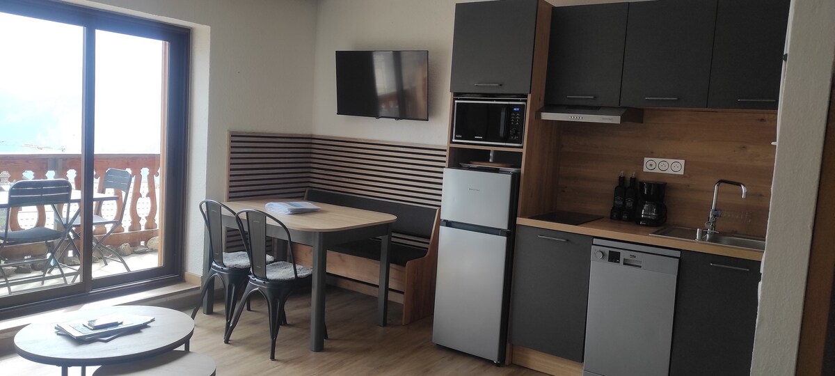 ❤ Apartamento reformado de 40 m² barrio antiguo Alpe☃️ Terraza orientada al sur🌞😎 bien organizada con todas las comodidades Idealmente situado cerca de comercios, oficina de turismo venta de paquetes y salida del Telecabina🚡 centro. Posibilidad de salir del edificio esquís calzados telesilla de la gran seguridad y posible retorno a los esquís🎿 lanzaderas gratuitas cerca de la residencia. Aparcamiento gratuito reservado a la copropiedad. Posibilidad de dejar de coger el vehículo mientras dura la estancia.