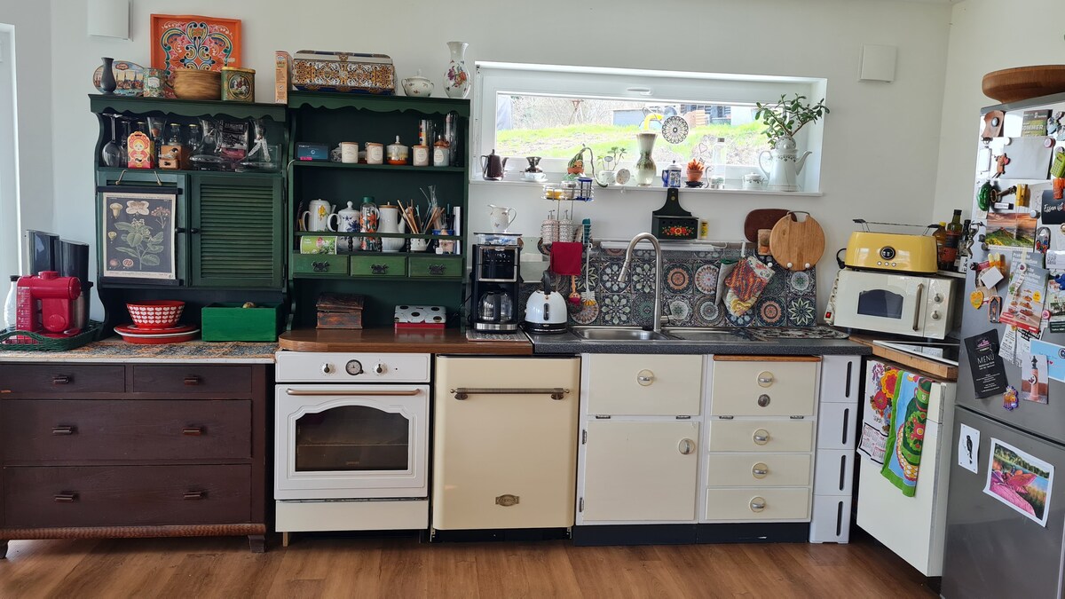 Casas de campo adosadas en plena naturaleza en una propiedad de 850 m² completamente vallada. Casa pequeña, equipada de forma moderna. Muebles de salón relajantes en el exterior, muy acogedor en el interior, perfecto para relajarse. Con wifi (calidad de transmisión), TV (Telekom Magenta TV), lavavajillas, microondas, parrilla de chimenea, parrilla eléctrica. Cama con somier, sofá cama. Se admiten perros (1-2 de tamaño mediano, sin pelo o con poco pelo, 15 euros por perro). Las terrazas son un verdadero oasis de bienestar para personas y animales.