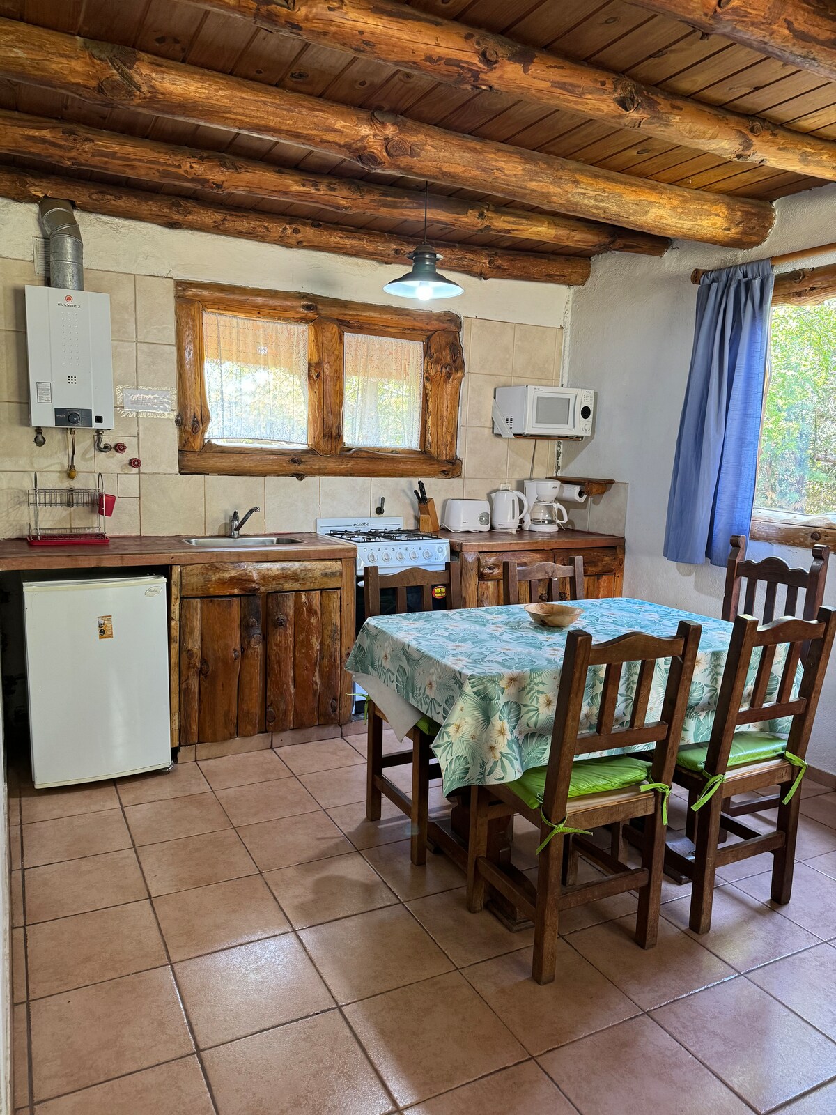 Las cabañas estan decoradas ,con elementos de la zona y arte indigena. Poseen tabla de picadas y para parrilla ,asi como platos de madera artesanales ,para las carnes asadas.