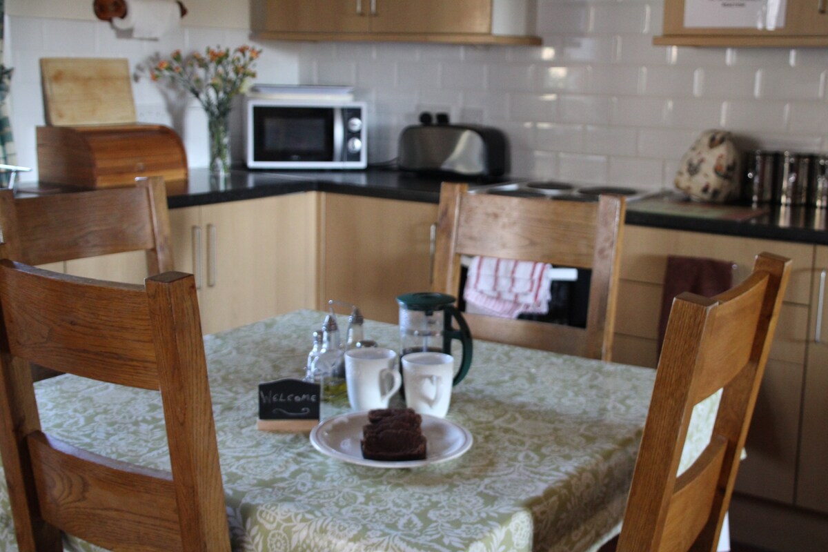 Sala de estar en la planta baja, comedor de la cocina, una estufa de leña para relajarse junto al fuego, solo para uso en invierno. Cocina: armarios a medida, encimera de granito con cocina eléctrica Aga. Una mesa de comedor a medida en un salón comedor de estilo abierto. Escalera de roble hasta el rellano del primer piso, dormitorio principal con cama tamaño king, cabecero acolchado de terciopelo, una gran ventana redonda con vistas increíbles, verdadero lujo. Un baño contemporáneo separado, con ducha sobre bañera, lavabo, inodoro y toallero eléctrico.