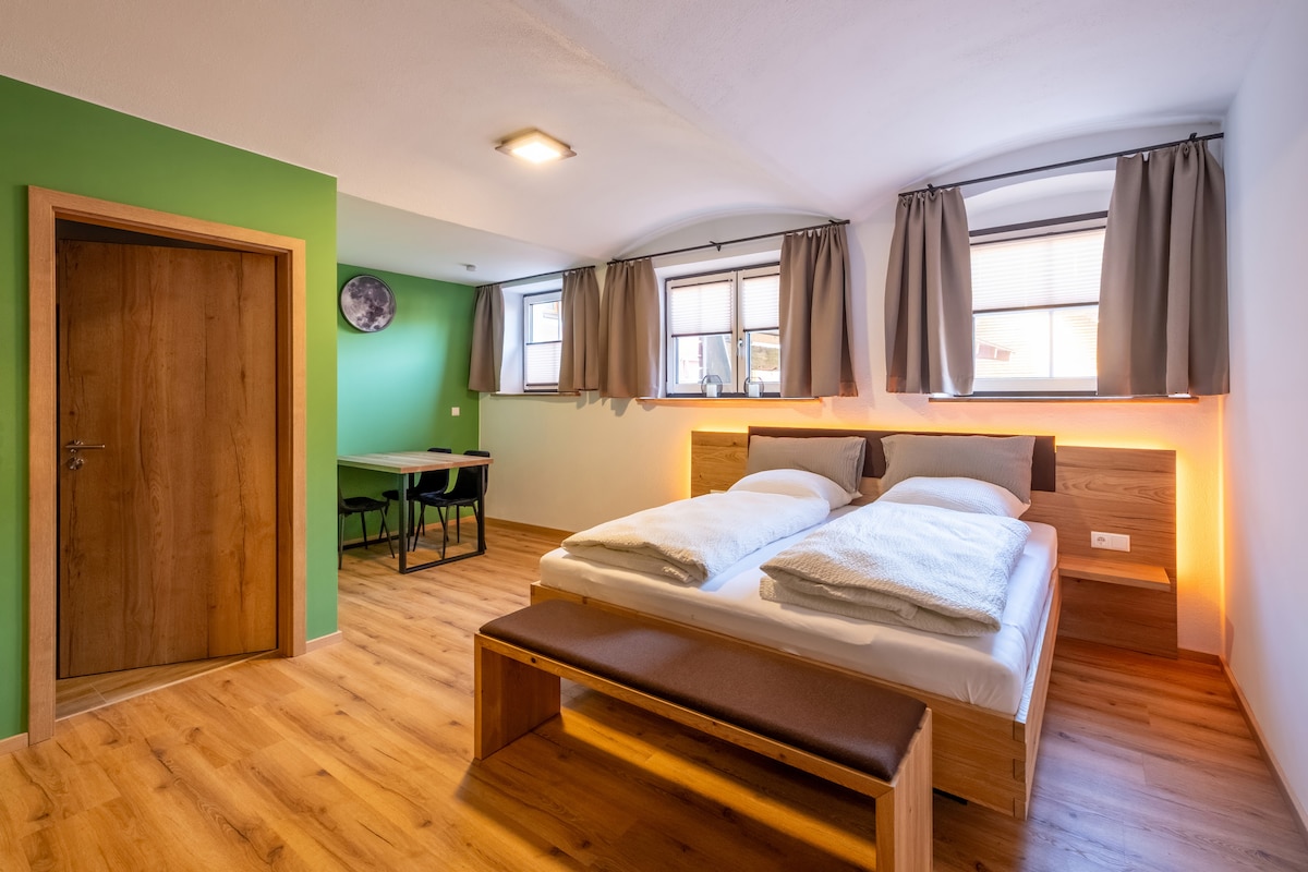 Bajo el Spitz y a lo largo de toda la casa, está nuestro apartamento de ángeles. En el apartamento loft abierto, además de mucho espacio y una gran vista, tienes todo lo necesario para unas vacaciones exitosas. Desde la cama doble se mira al cielo, desde la sala de estar y el comedor se puede ver la ciudad. Un baño con una gran ducha para relajarse y una cocina perfecta para el bienestar culinario. Te esperamos con una arquitectura espaciosa y un diseño informal en un ambiente cálido.