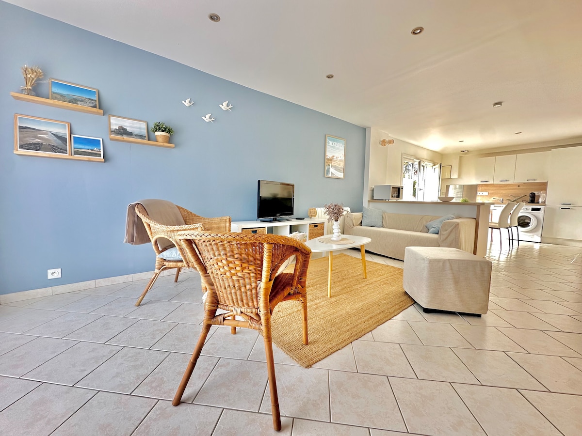 ¡Ubicación excepcional frente al mar! En cualquier momento del año, gracias a su luminosidad y su agradable jardín situado en la parte posterior, es el lugar perfecto para pasar unos días. 2 habitaciones, una bonita sala de estar, 2 baños y un jardín soleado. ¡Muy funcional para disfrutar de la playa, pasear por las Dunas de la Slack o disfrutar de los hermosos paisajes de nuestra Costa de Ópalo! Posibilidad de teletrabajo. Se proporcionan sábanas y toallas.