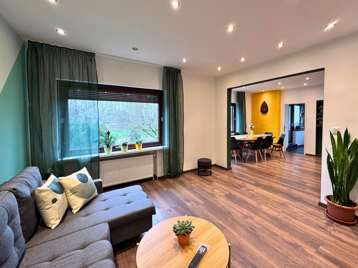 Apartamento Hankhausen con aspectos ecológicos. El yeso de arcilla y las baldosas de terracota forman la base de un apartamento acogedor. El apartamento está en la planta superior, abajo vivo yo y mi pareja. El baño está equipado con sauna y tiene un toque asiático. Apartamento para no fumadores. El primer/segundo supermercado está a solo 1 km. Hay un espacio de aparcamiento disponible en las instalaciones.