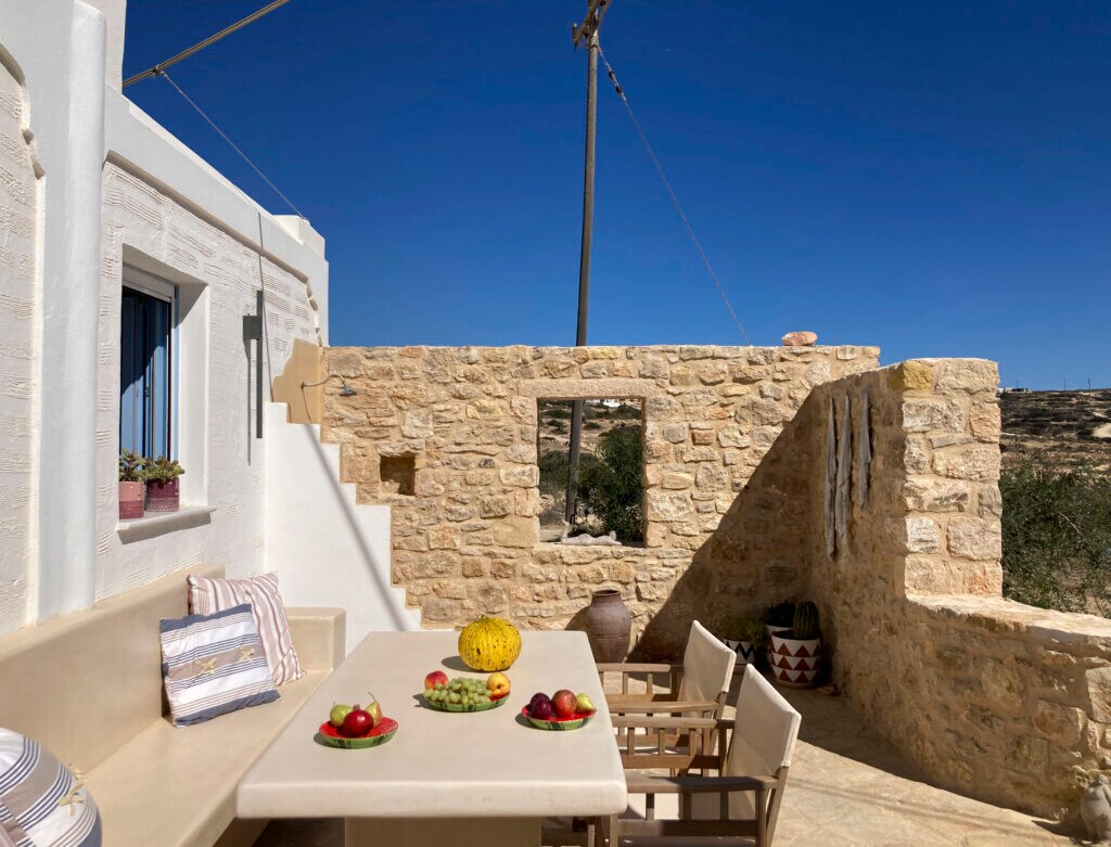 Una pequeña casa privada al final del puerto principal de la isla de Amorgos llamada Katapola. La playa está justo enfrente de la casa. Por lo que sabemos, fue la cabaña de mi bisabuelo, que era pescador, al igual que mi abuelo y mi padre. Pasaban todo el tiempo allí de abril a noviembre y el mar estaba en la puerta donde tenían su barco y sus redes. La casa fue totalmente renovada en 2012.