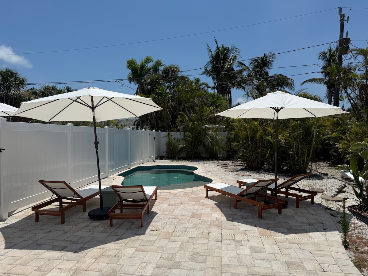 ¡Abierto de nuevo en enero de 2025! Situado a solo 200 pasos de la playa, tendrás los pies en la arena en poco tiempo. Una cómoda sala de estar y una cocina totalmente equipada. Amueblado con decoración isleña y arte local. Todo lo que necesitas, incluida una piscina climatizada, un gran patio con una cabaña Tiki, jardines tropicales y una zona privada al aire libre con ducha para tu comodidad. Camina a todas partes: tienda de comestibles, farmacia, heladería, desayuno, pizza, donas y la playa, que está a menos de 2 minutos.