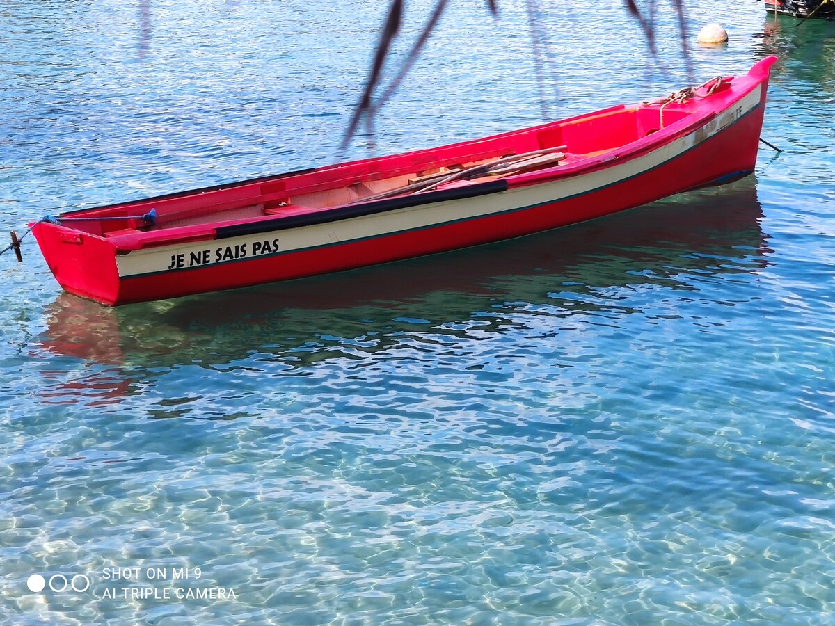 En Les Trois-Îlets, Anse Mitan, disfruta de tus vacaciones con los pies en el agua (a 30 metros de la playa) y con unas vistas espectaculares al mar. Amplio apartamento luminoso: 2 dormitorios con aire acondicionado, ropa de cama de alta gama y dos vestidores grandes, una agradable galería, un salón acogedor y una cocina totalmente equipada. Todo está previsto: yoga, teletrabajo, cuna, espacio de almacenamiento. A pie: bares, restaurantes, casino y barco lanzadera a Fort-de-France. ¡El lugar perfecto para disfrutar de Martinica!