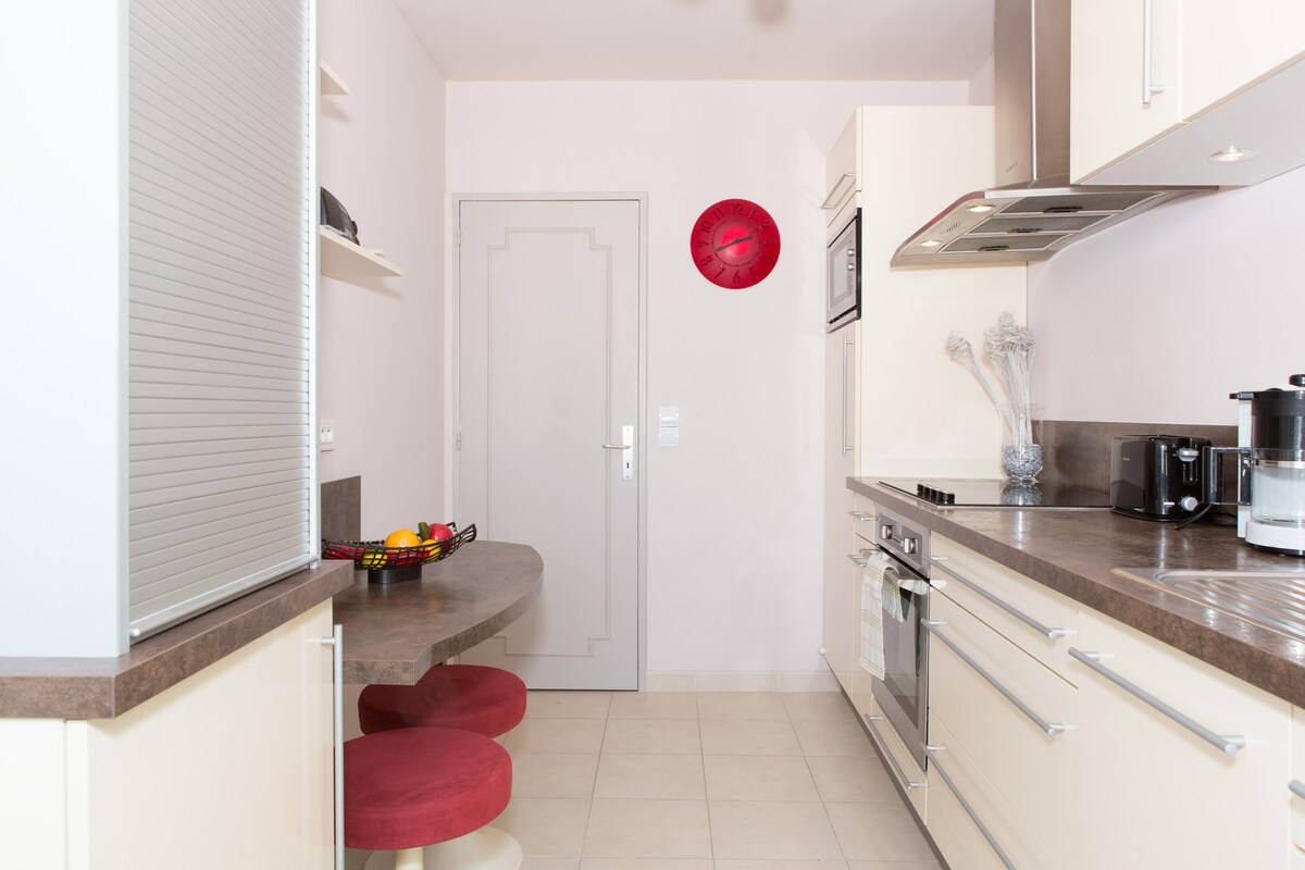 Este alojamiento familiar, en el corazón del Carré d'Or, está a 100 m de la Promenade des Anglais, con un pequeño balcón que ofrece una vista del mar. Ideal para una o dos parejas y/o una familia de cuatro personas. Enfrente, un spa de 300 m² y un supermercado; restaurantes variados cerca. Incluye dos dormitorios grandes con armarios, uno con ducha, un baño grande independiente y una cocina semiabierta en el salón, compacta pero bien equipada.
