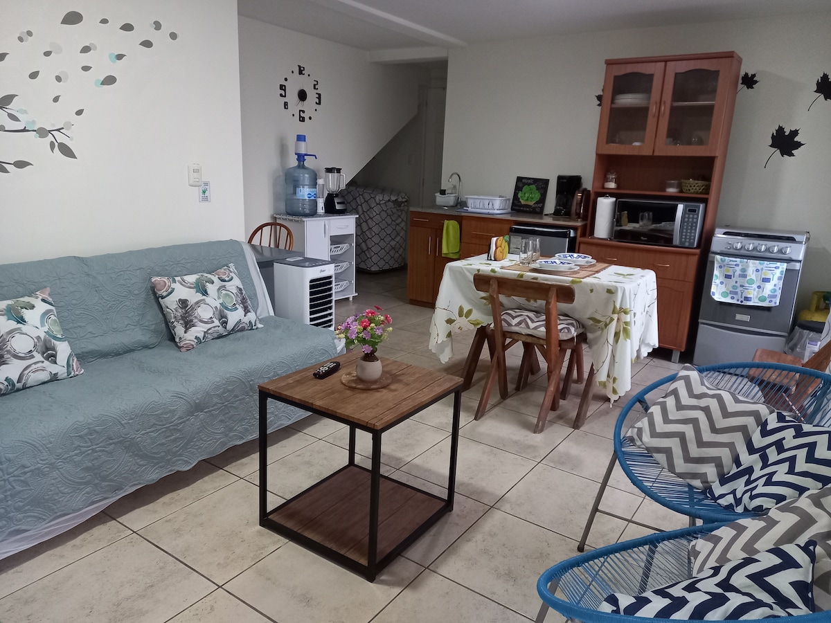 ¡Bienvenido a tu refugio perfecto en la ciudad! Un espacio ideal para solos o parejas. Ubicada a pocos minutos de centros comerciales y supermercados. Disfruta de una cómoda cama, baño privado y comodidades básicas como tetera, horno, tostadora y refrigeradora, es perfecta para descansar y disfrutar. Su decoración cálida y elegante te invita a relajarte. Ubicada estratégicamente, ofrece fácil acceso a atracciones y servicios. ¡Tu hogar lejos de casa te espera!