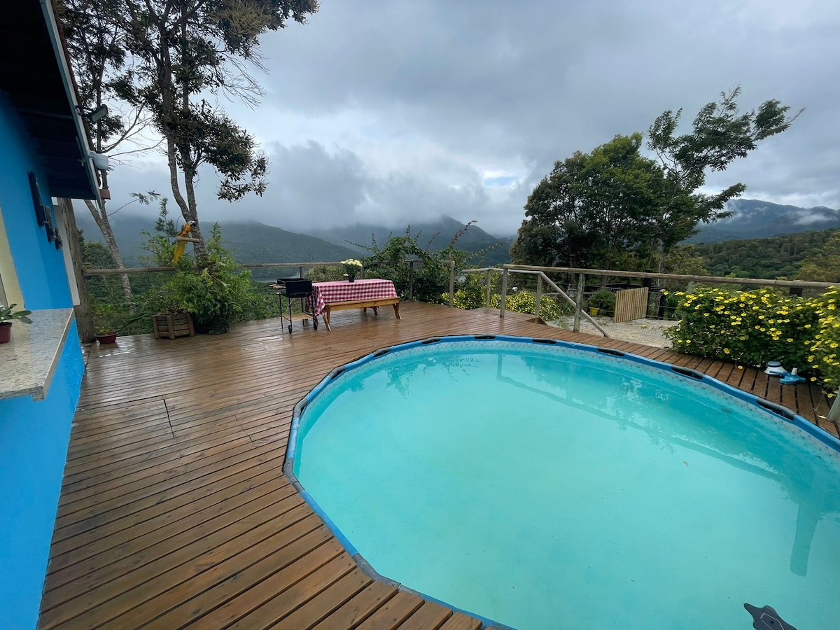 Casa mixta, madera y mampostería, piscina de agua natural directamente de la Serra... zona gourmet con barbacoa... estufa de leña... Con una hermosa vista de la Serra do Mar. Casa sencilla pero acogedora, limpia, ventiladores en todas las habitaciones, lugar muy tranquilo, fácil acceso al borde del asfalto. Ahora también tenemos un rincón acogedor para los fríos días de invierno para calentar un fuego y comer una piña en el plato y asar maíz en la parrilla. También tenemos una televisión inteligente.