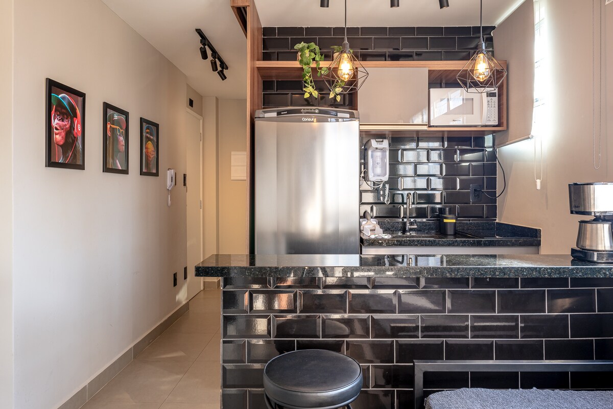 Este apartamento de 55 m² es ideal para parejas y ejecutivos en viajes de negocios. Cuenta con todo lo que esperarías de un apartamento: practicidad y tecnología. Para aquellos que vienen a pasar la Nochevieja en Santos, pueden disfrutar de las festividades sin siquiera salir del edificio. Desde la zona de la piscina, puedes disfrutar de las vistas al mar, los fuegos artificiales y el ambiente festivo de la ciudad sin tener que lidiar con el tráfico, las multitudes o un agotador viaje después de los fuegos artificiales.