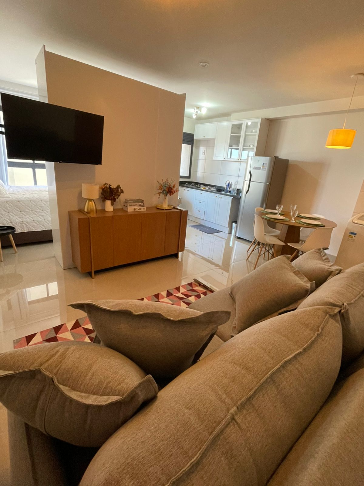 Lugar especial, perto de tudo. Flat novo, muito bem decorado, com TV (Netflix), ar condicionado, cama de casal queen, sofá cama de casal, roupas de cama e banho limpas e macias, máquina de lavar/secar roupas, geladeira, purificador refrigerado de água, cooktop, sacada com vista incrível, 1 vaga de garagem. Prédio é de alto padrão. Piscina borda infinita, vista panorâmica e aquecida, hidromassagens, academia e sauna na cobertura - 40 andar. Espaços temáticos, lavanderia, quadra squash, jardim.