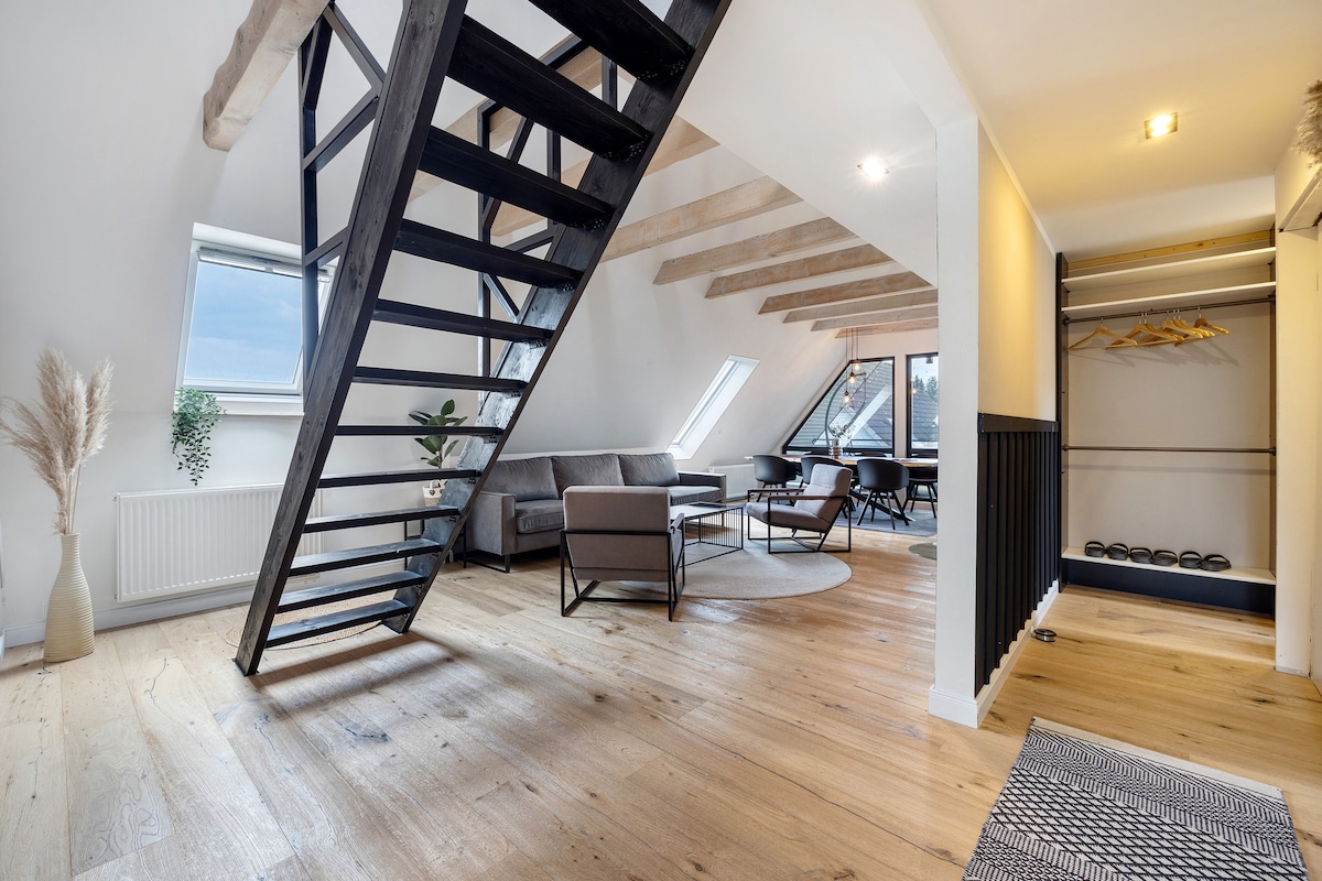 Este espacioso alojamiento en casa de un arquitecto cautiva sobre todo por el suelo escalonado de luz abierta con una gran terraza en la azotea y una chimenea giratoria de 360 grados, abierta y de 360 grados. La parte delantera de la ventana se puede abrir por completo. La refinada cocina cuenta con una máquina portafiltros y un sistema profesional Bora con Teppan. El sistema de sonido envolvente proporciona una experiencia de sonido especial. En la segunda planta se encuentran los tres dormitorios y baños y una zona de salón abierta.
