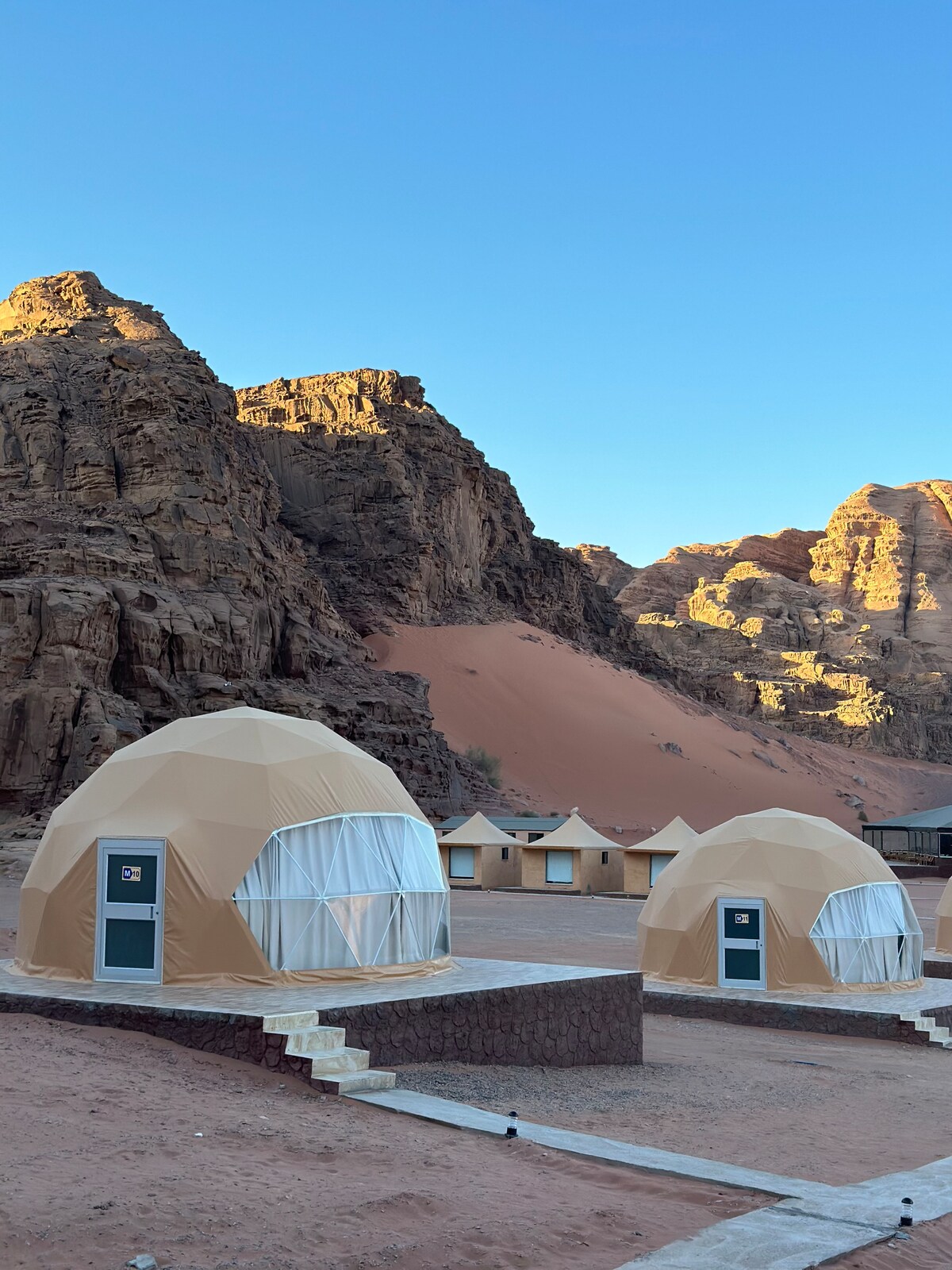 Sumérgete en una experiencia desértica inolvidable sin renunciar a la comodidad de tu hogar. Sun City invita a los huéspedes al corazón del magnífico paisaje desértico, ofreciendo una forma única y lujosa de acampar. Esta cúpula viene con su propio baño privado, aire acondicionado y terraza. También ofrecemos desayuno y cena estilo buffet incluidos en la tarifa por noche. Hay una cama supletoria disponible para solicitarlo.