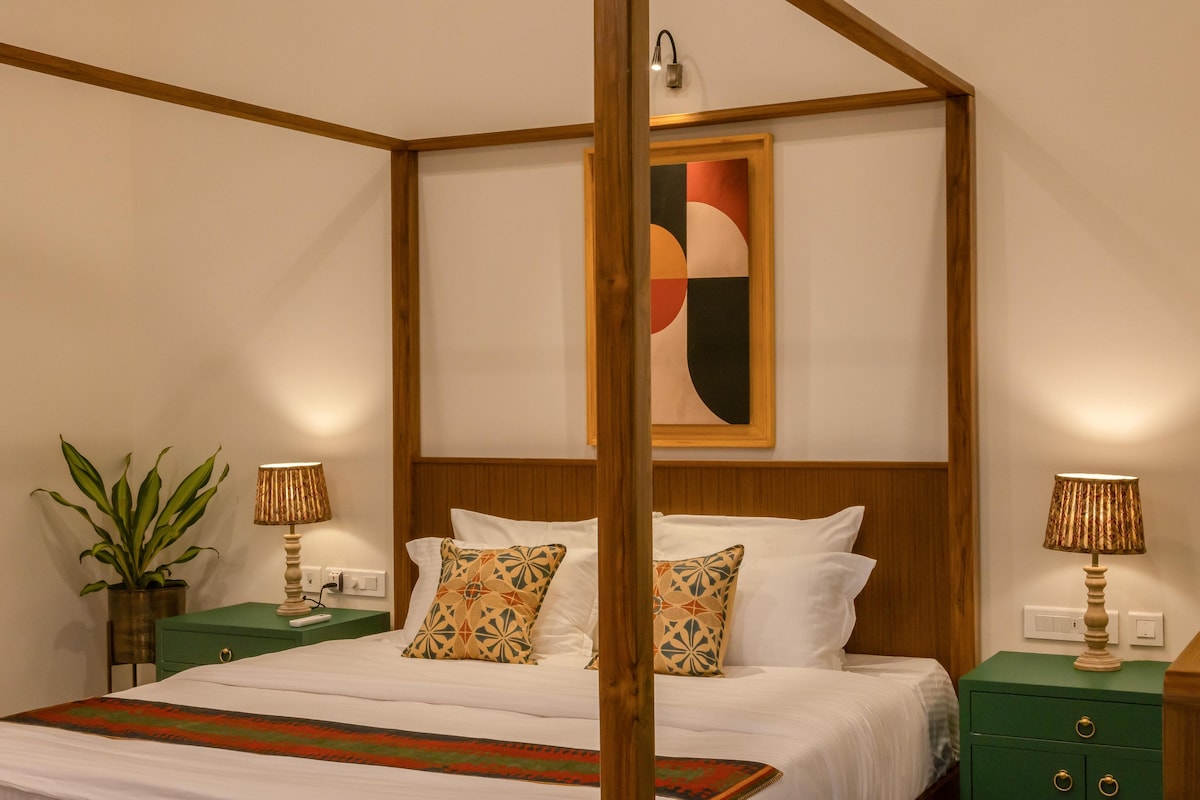 Kanso by Earthen Window es un tranquilo 1BHK en Siolim, diseñado en torno a la tierra, la luz y la privacidad. Diseñados para mañanas lentas y noches sin prisas, los interiores están hechos con paredes encaladas, suaves suelos de microhormigón y objetos cuidadosamente elegidos que le dan un encanto de villa. El dormitorio se abre a una TERRAZA PRIVADA CON JARDÍN y a una bañera de hidromasaje aislada de microcemento con JACUZZI, ambas con vistas al bosque verde ininterrumpido. Las comodidades compartidas incluyen piscina, baño turco, gimnasio y seguridad las 24 horas del día, los 7 días de la semana.