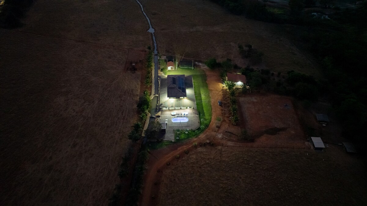 Casa na campo a 45 minutos del centro de Brasilia. Ambiente acogedor con gran zona de ocio, impresionantes vistas y una pequeña cascada privada. Local con potencial espacio para eventos y perfecto para las celebraciones entre amigos y familiares. Poseer la mayor parte de su zona cubierta por la vegetación del cerrado autóctono. Una escapada para quien quiere alejarse del estrés urbano y disfrutar de un momento de ocio en la naturaleza con comodidad y seguridad, sin salir del DF.