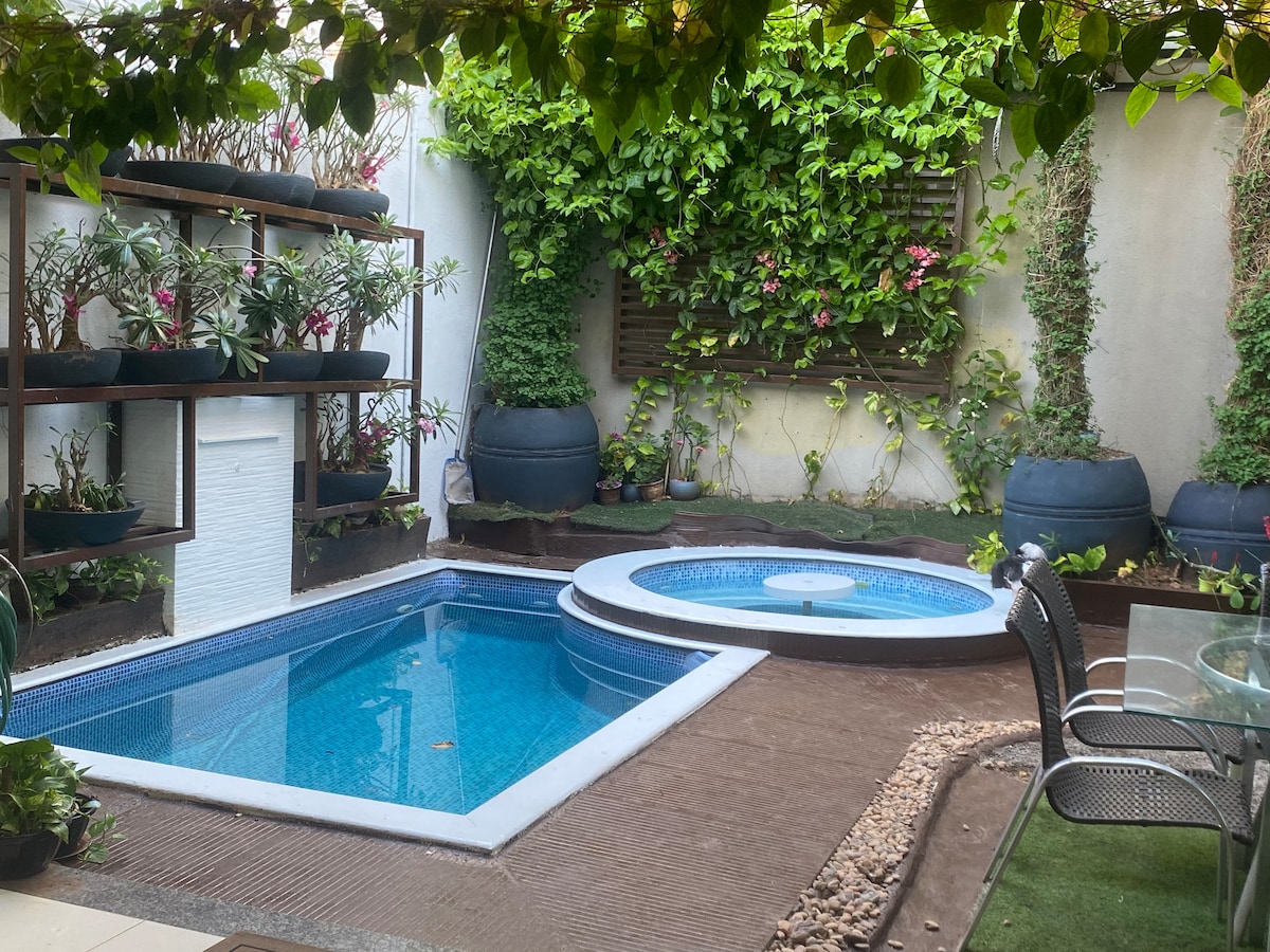 Casa completa, sala de televisión con cocina equipada, camas con sábanas, almohadas y toallas. Muy seguro, excelente ubicación, justo en el centro, cerca de bares, restaurantes, supermercados, Via Lago, centro de convenciones, con acceso rápido al centro comercial. Relájate o relájate con tu familia en este lugar tranquilo y acogedor.